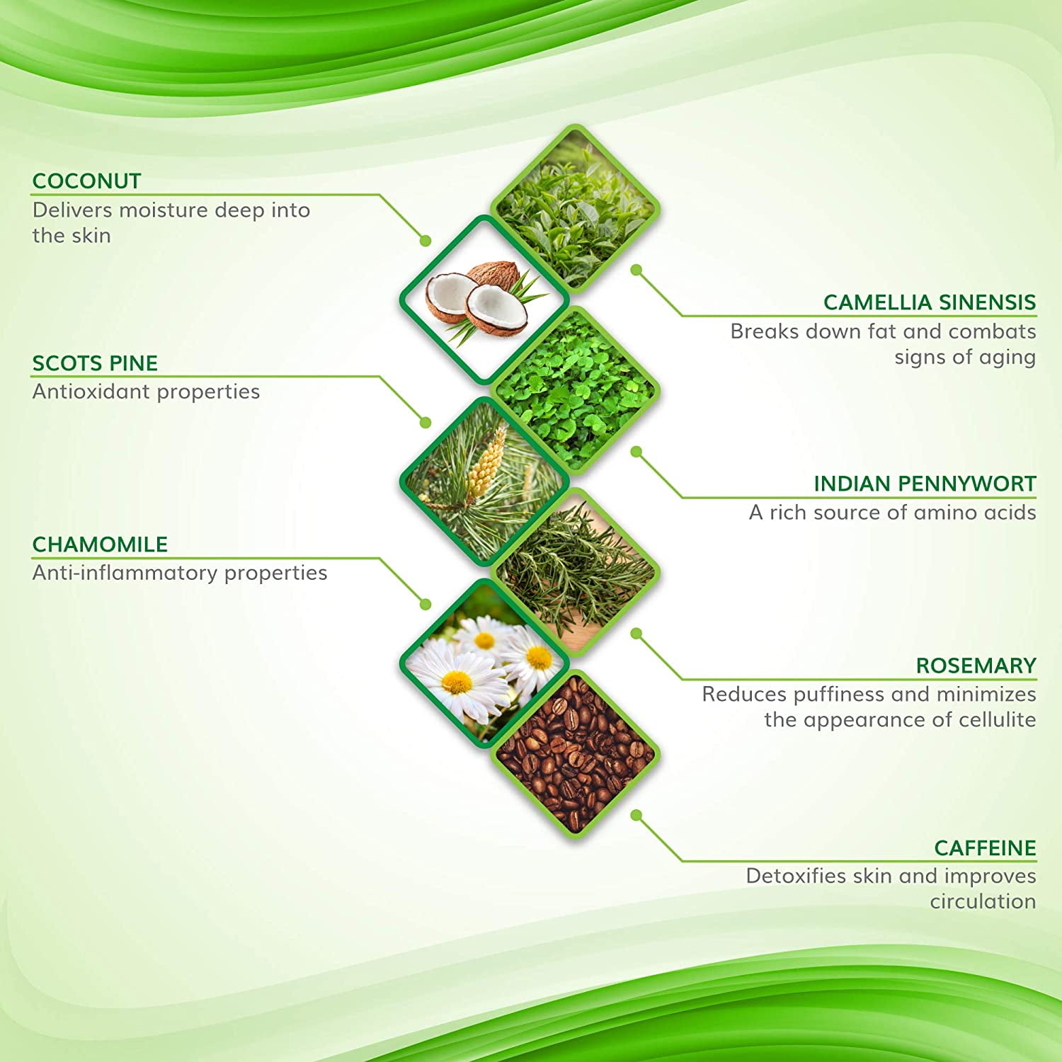 - FIRMING BODY GEL WITH NATURAL EXTRACTS blended by experts, this skin-firming Moisturizing gel contains plant extracts including coconut for its moisturizing properties, chamomilla flower extract which has natural anti-inflammatory benefits, and rosemary plant extract which reduces skin puffiness and is excellent for healing and minimizing the appearance of cellulite. 5.007 oz