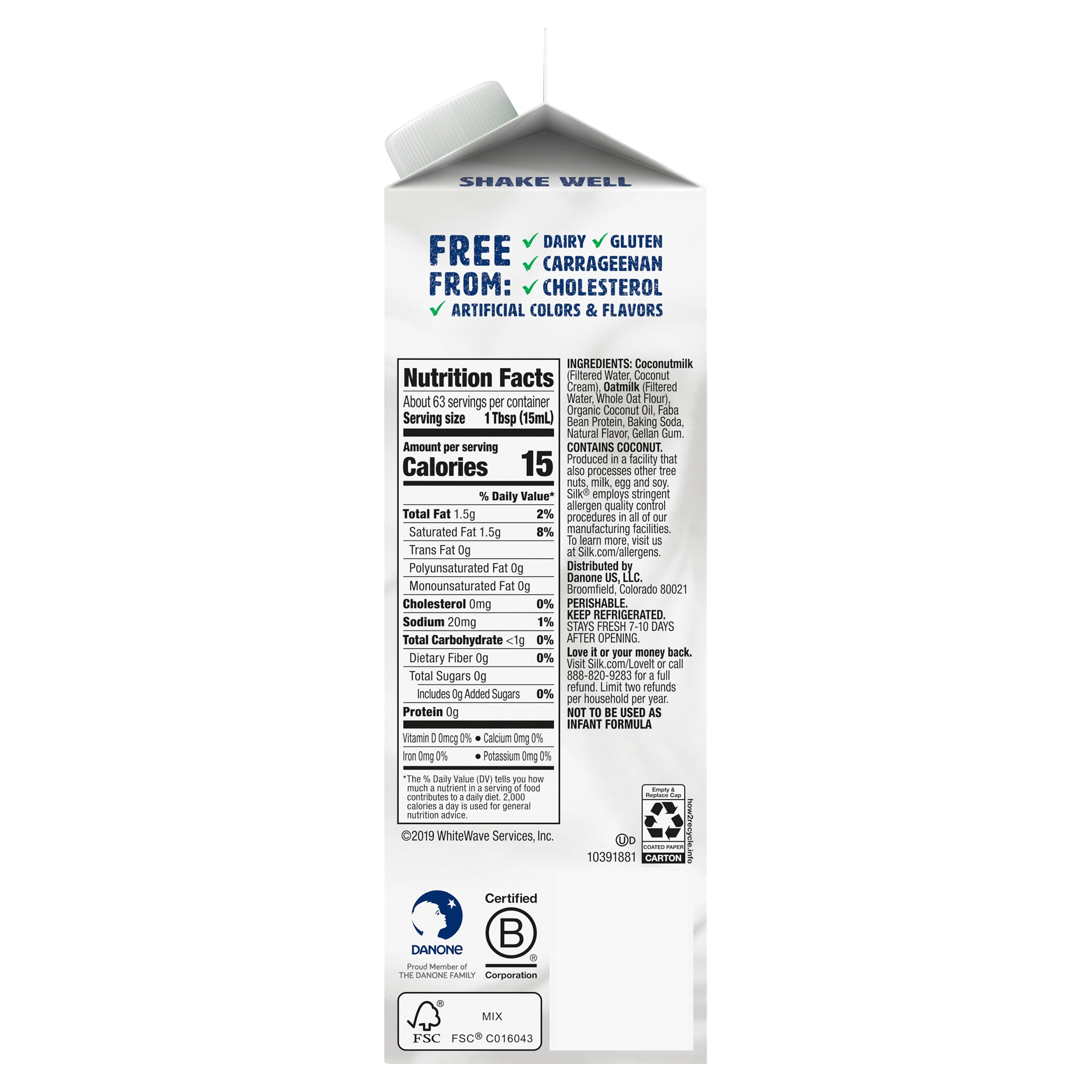 Top off your morning coffee with something special. Silk Dairy Free Half & Half Alternative adds a smooth, lusciously creamy, and delicious flavor to your coffee. This dairy-free creamer, made with oatmilk and coconutmilk, is completely plant-based. Best of all, this Non-GMO Project Verified creamer does it all with zero grams of cholesterol and sugar* per serving, and it is free of dairy, lactose, gluten, casein, egg, peanut and MSG. And it’s not just for coffee–try it with tea, soups, and more.