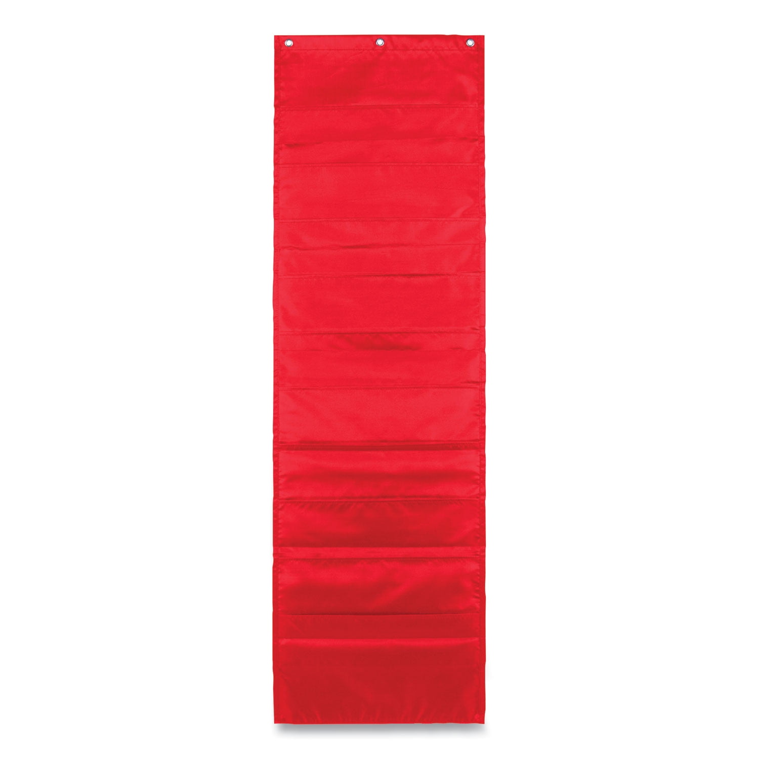 The Storage Pocket Chart is ideal for creating a complete classroom organization system. Perfect for homework assignments, communication, center management, and more, it measures approx. 14" x 46.5" and features: 10 fabric pockets (13.5" x 7" each) Flame retardant matrl and durable construction Sturdy grommets for easy hanging