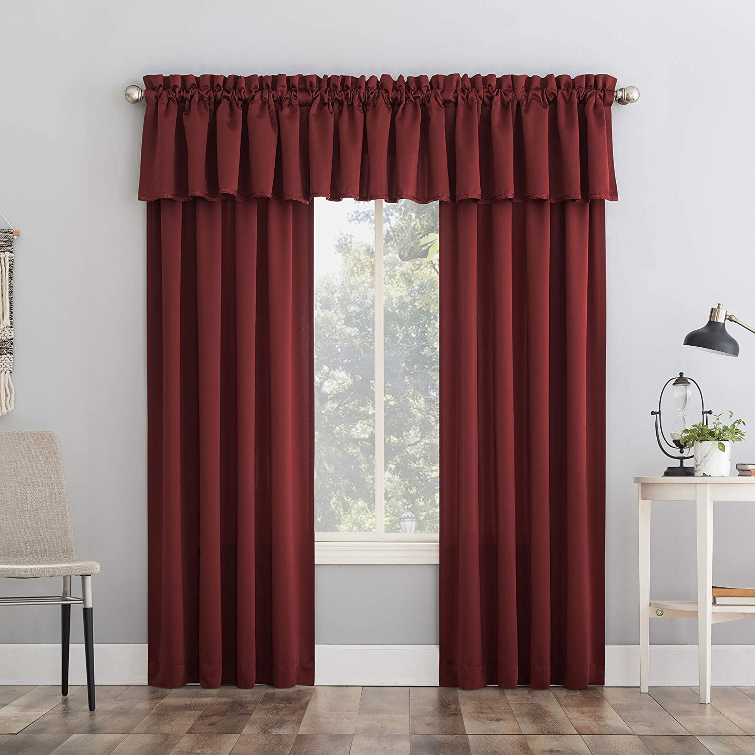 The Sun Zero Gramercy Curtain Valance in wine red delicately adorns the top of any window in your home. Pair with Sun Zero curtains or hang alone for maximum light exposure. Equipped with a rod pocket that fits curtain rods up to 1.5" in diameter. Machine wash cold on gentle cycle. Use non-chlorine bleach when needed. Tumble dry on low heat, using a cool iron as needed. Sold as individual valances measuring 54" width by 18" length. Coordinating curtain panels are sold separately. Measure carefully before selecting your desired size and quantity. Machine wash cold on gentle cycle. Use non-chlorine bleach when needed. Tumble dry on low heat, using a cool iron as needed.