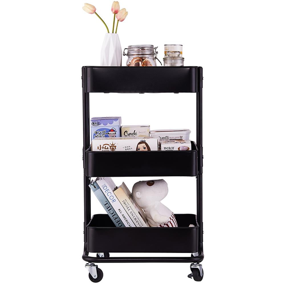 UBesGoo Rolling Metal Mesh 3 shelf Utility Cart,Storage Shelf Rack for Kitchen Living Room