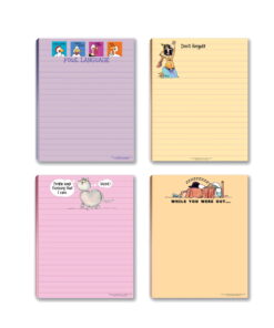 - Medium-weight notepad with durable backer. Top-bound design allows you to quickly flip through papers to find information.