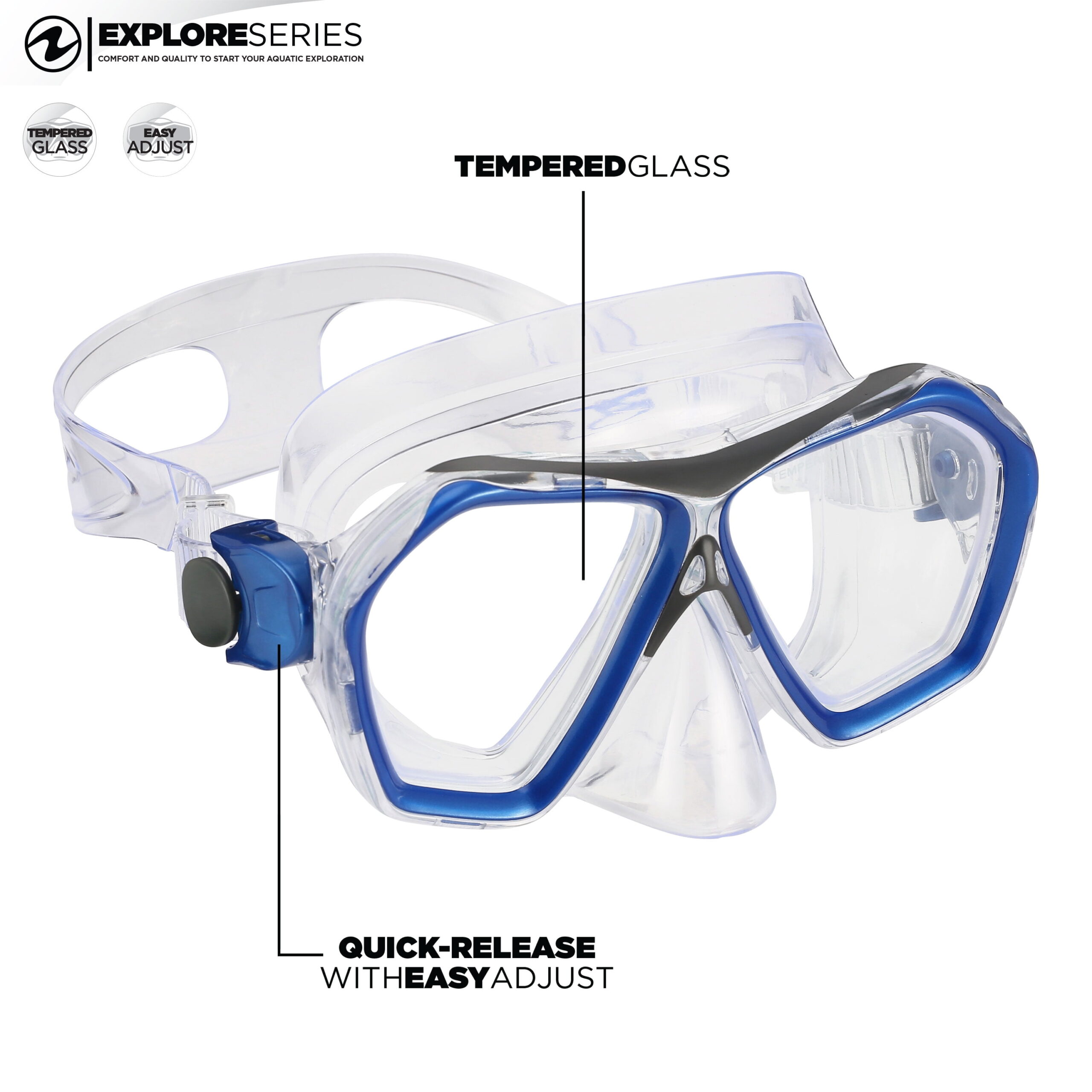 U.S. Divers Mango Snorkel Mask with 2-Window Tempered Glass Lens and Easy-Adjust Buckle (Blue)