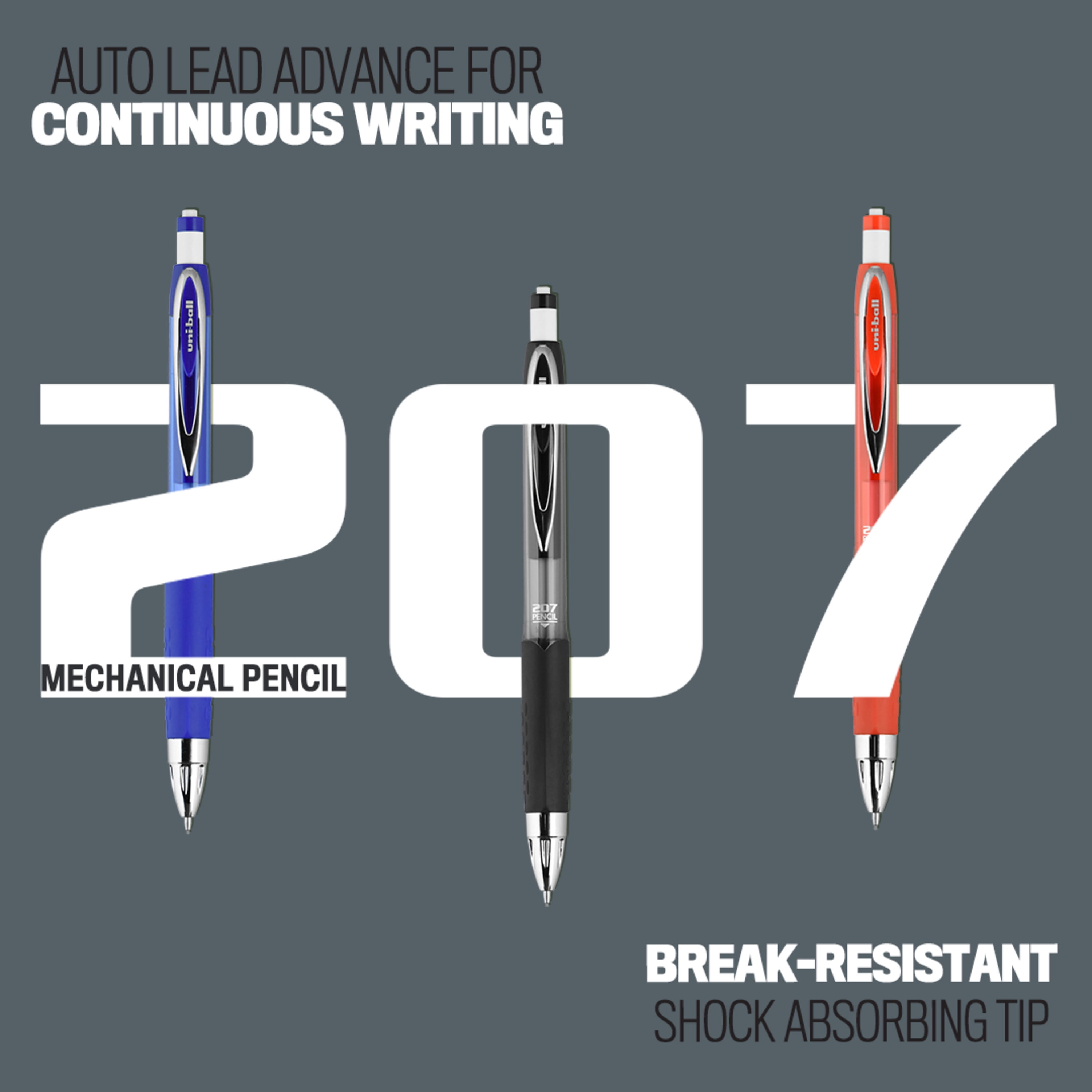 - 207 Automatic Mechanical Pencils writes seamlessly with auto-advancing lead & shock-absorbing cushioned point