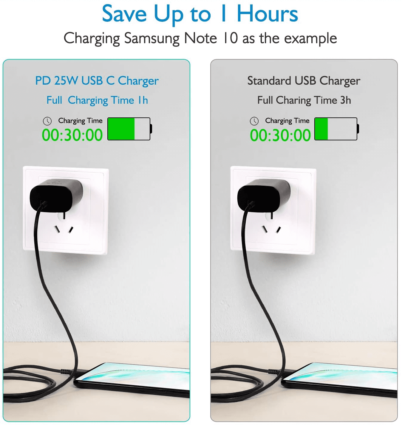 Super fast charging – this UrbanX wall charger with 25 Watt Super fast charge capability uses Power Delivery (PD) to provide the most efficient charge possible. can charge at up to 25W. Other USB-C devices rates will vary.