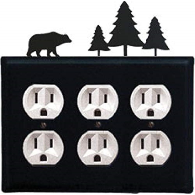 Village Wrought Iron EOOO-83 8 Inch Bear and Pine Trees – Triple Outlet Cover Black