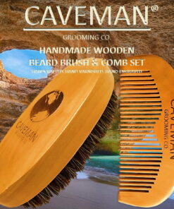 Handcrafted Natural Fine Tooth Wooden Beard Comb + Beard Brush by Caveman