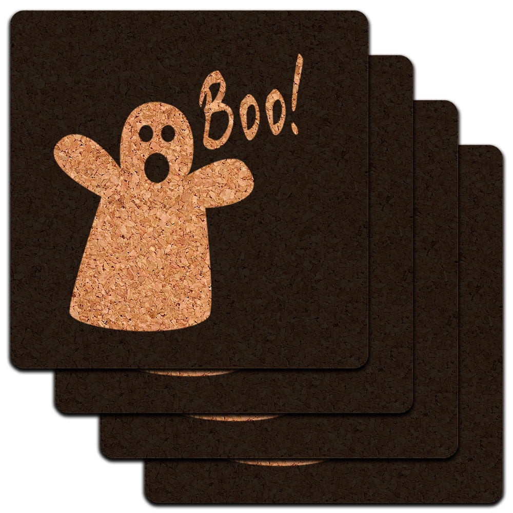 Boo Ghost Halloween Low Profile Cork Coaster Set