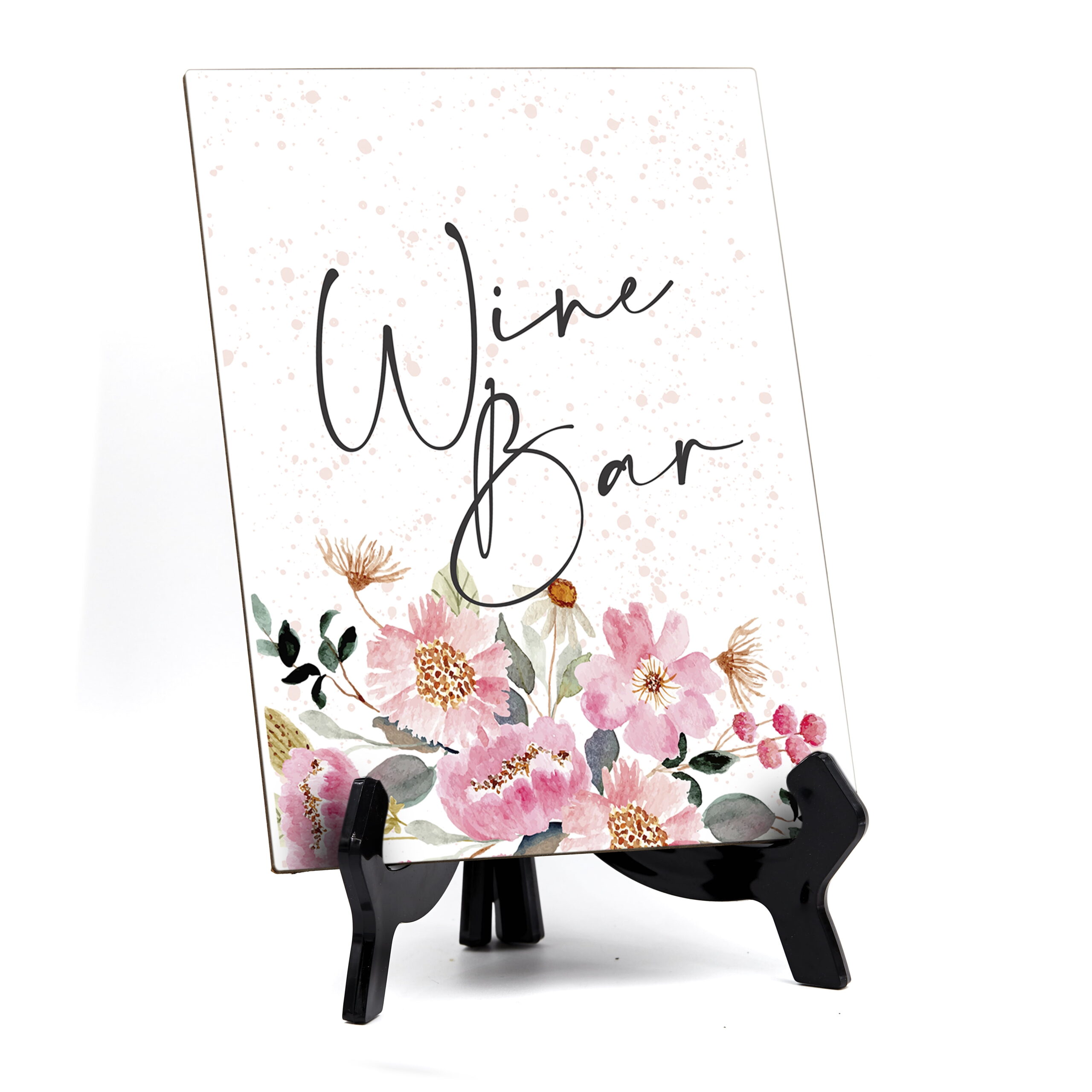 Wine Bar Sign. Comes with Easel, Floral Watercolor Design (6" x 8") Professional Sign. Great for weddings, parties, dinner parties, general table signs.Wine Bar Table Sign with Easel, Floral Watercolor Design (6" x 8")