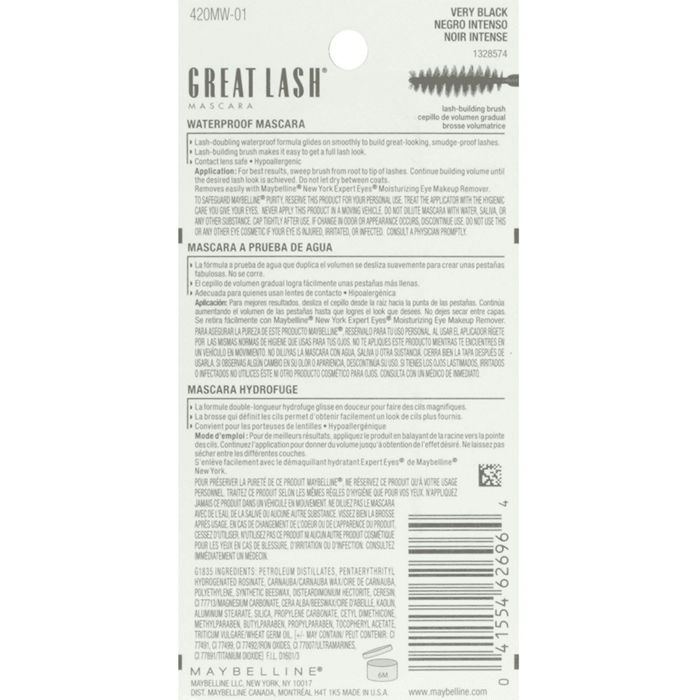 Maybelline Great Lash Waterproof Mascara, Very Black [111], 0.43 oz