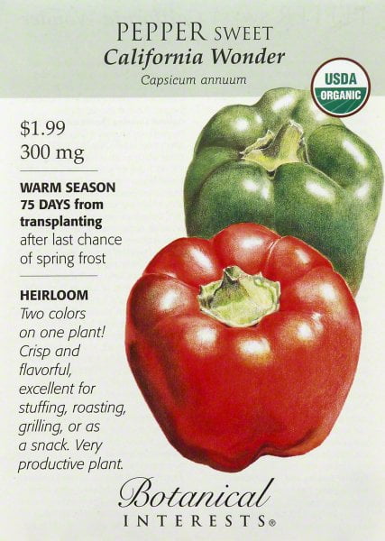 Botanical Interests California Wonder Organic Sweet Pepper Seeds, 300 mg