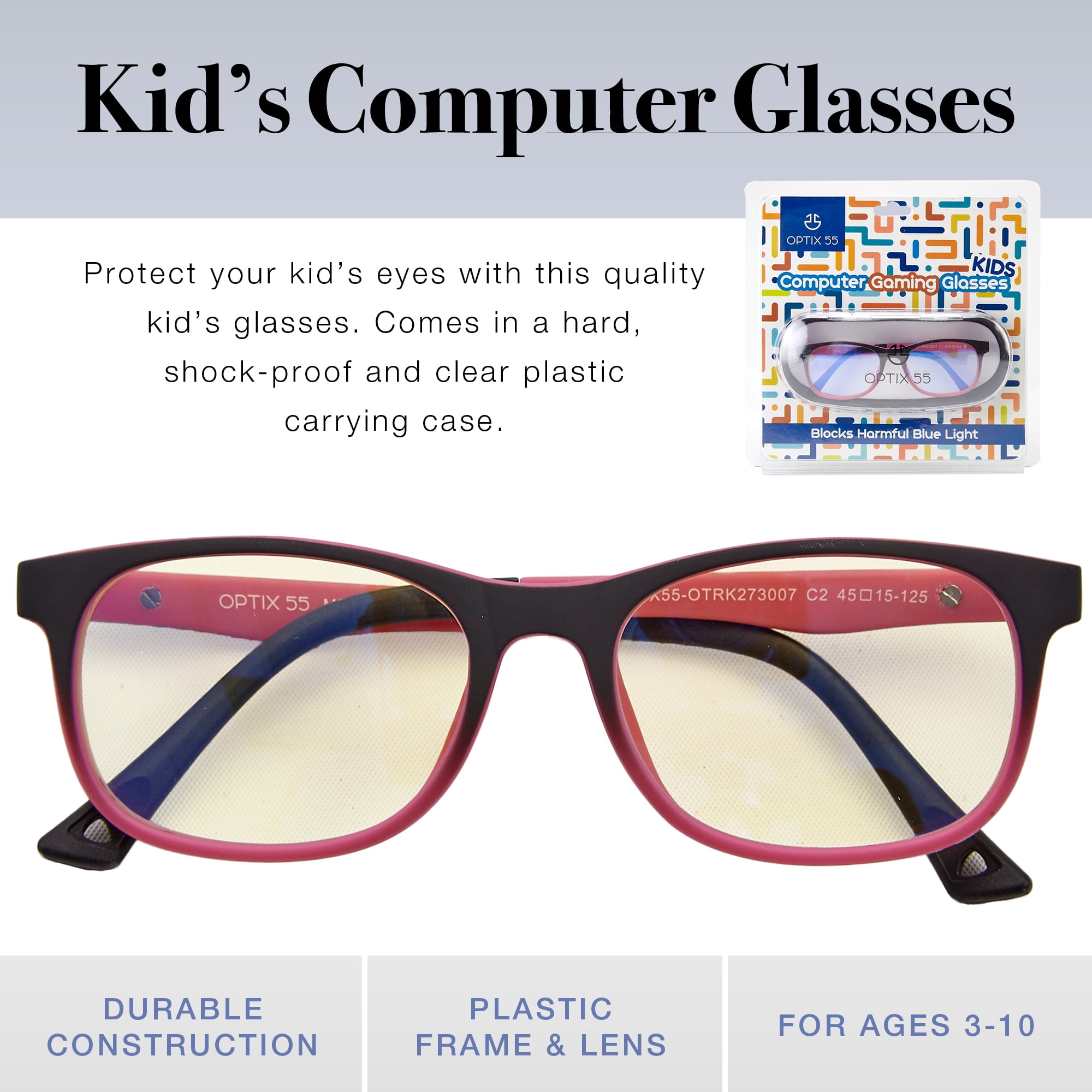 Blue Light Glasses Kids Girls & Boys-Computer Gaming Eyeglasses in Pink – Anti Eyestrain By Optix 55