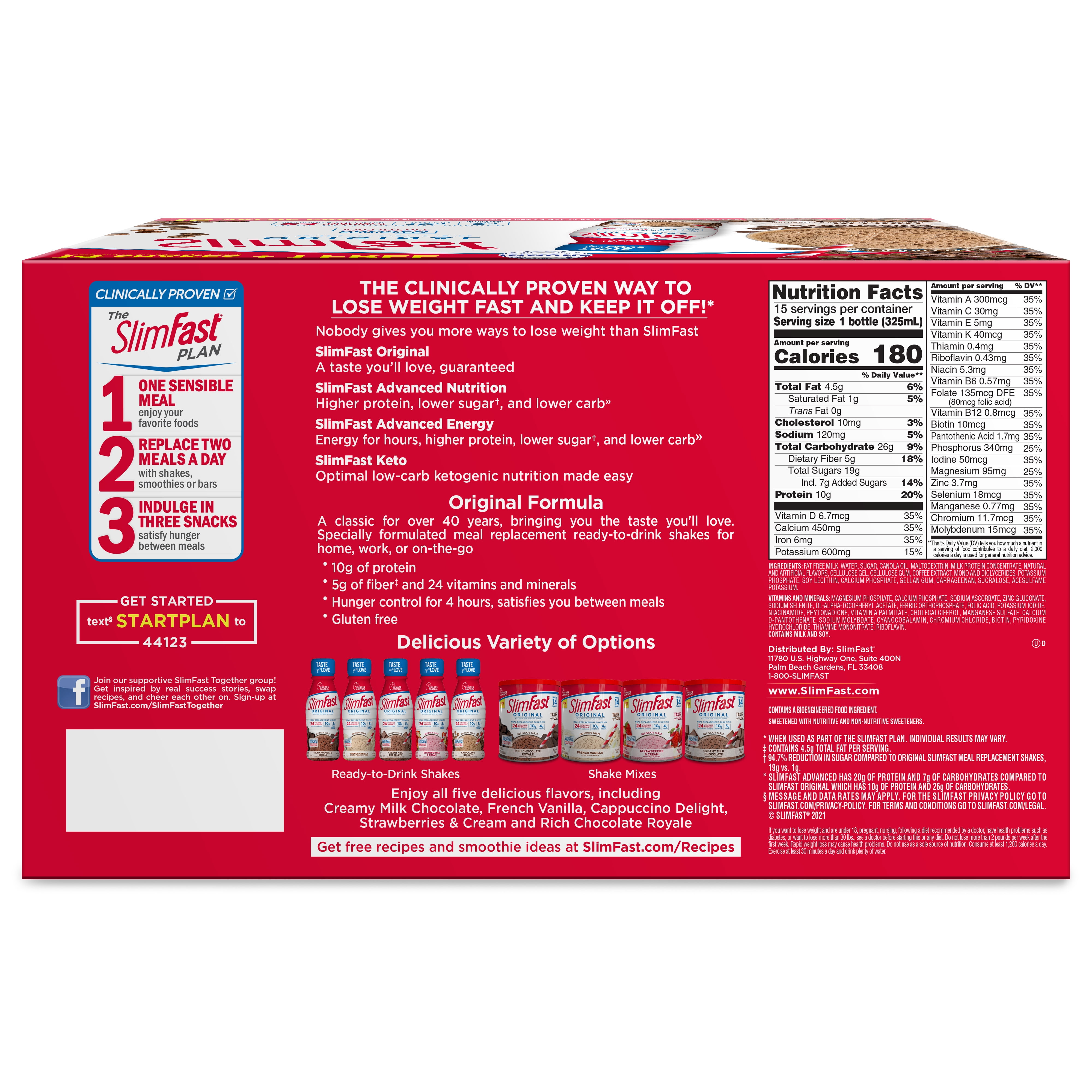 SlimFast Original Read to Drink Meal Replacement Shakes, Cappuccino Delight, 11 fl oz, 15 Count
