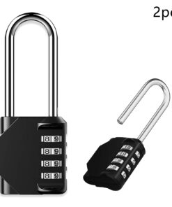 Black Resettable Padlock (2.2 Inch), 2 Pack Long Shackle 4 Digit Combination Lock, Outdoor Waterproof Combo Lock for Gate School Gym, Hasp Cabinet, Fence, Toolbox Lock