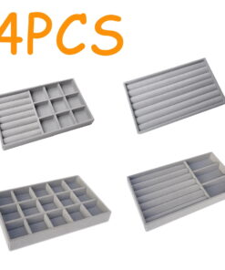 Jewelry Organizer Stackable Jewelry Organizer Trays Jewelry Insert Container Display Case Storage Earrings Necklace Ring Bracelet with Removable Divider Grey 4PCS