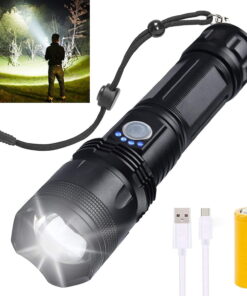 Rechargeable Flashlight High Lumens,90000 Lumen Super Bright LED Flashlight with 5 Modes,LED Waterproof Handheld Flashlight for Home,Camping,Emergencies – Black