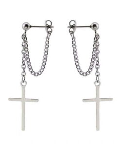 Brongsleet Cross Dangle Chain Ear Drop Earrings Alloy Ball Studs Clip Hypoallergenic Jewelry for Women Men Ear Stud