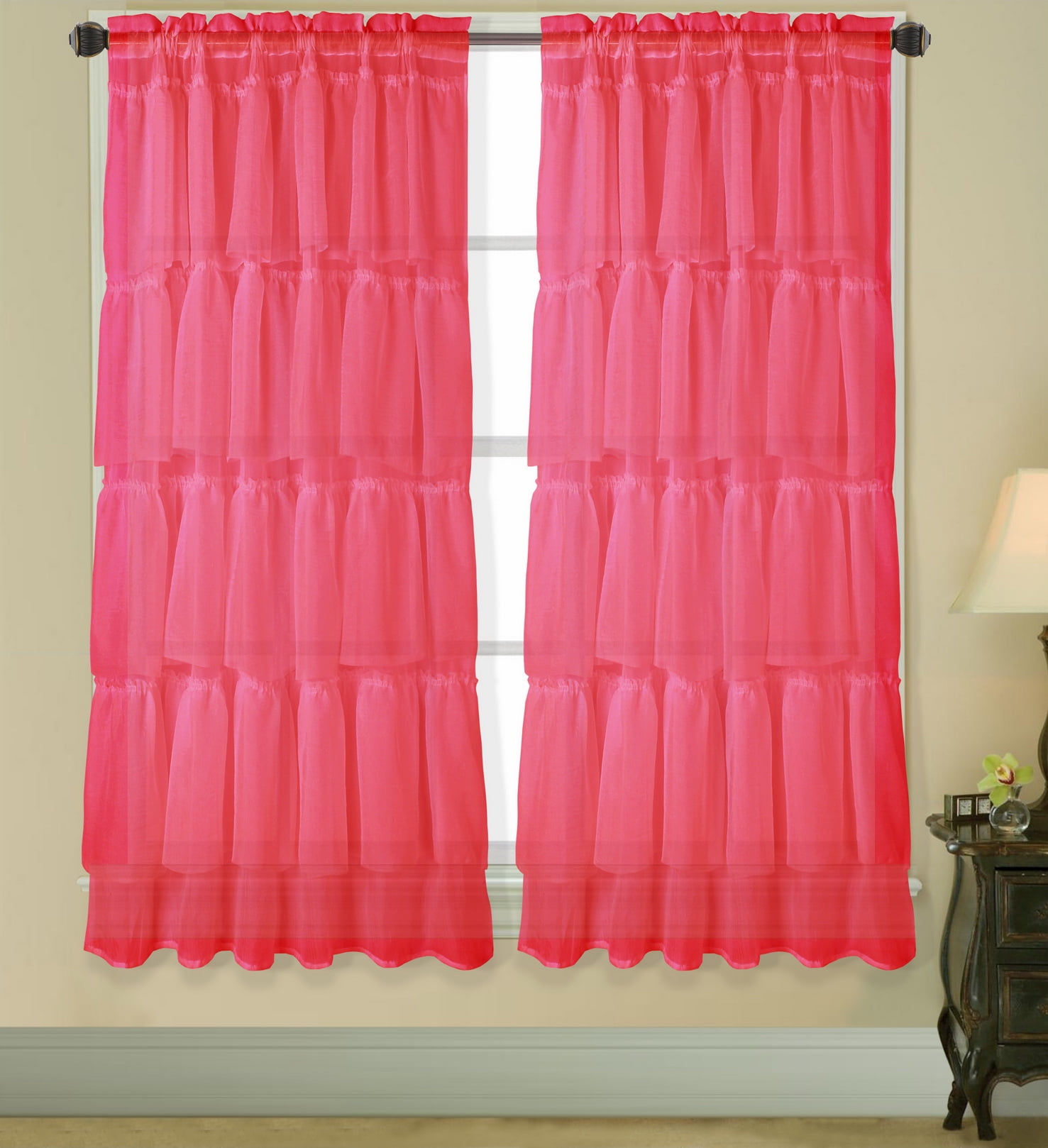 1pc RED Gypsy Ruffled Rod Pocket Sheer Window Curtain Panel 55’W x 84’L