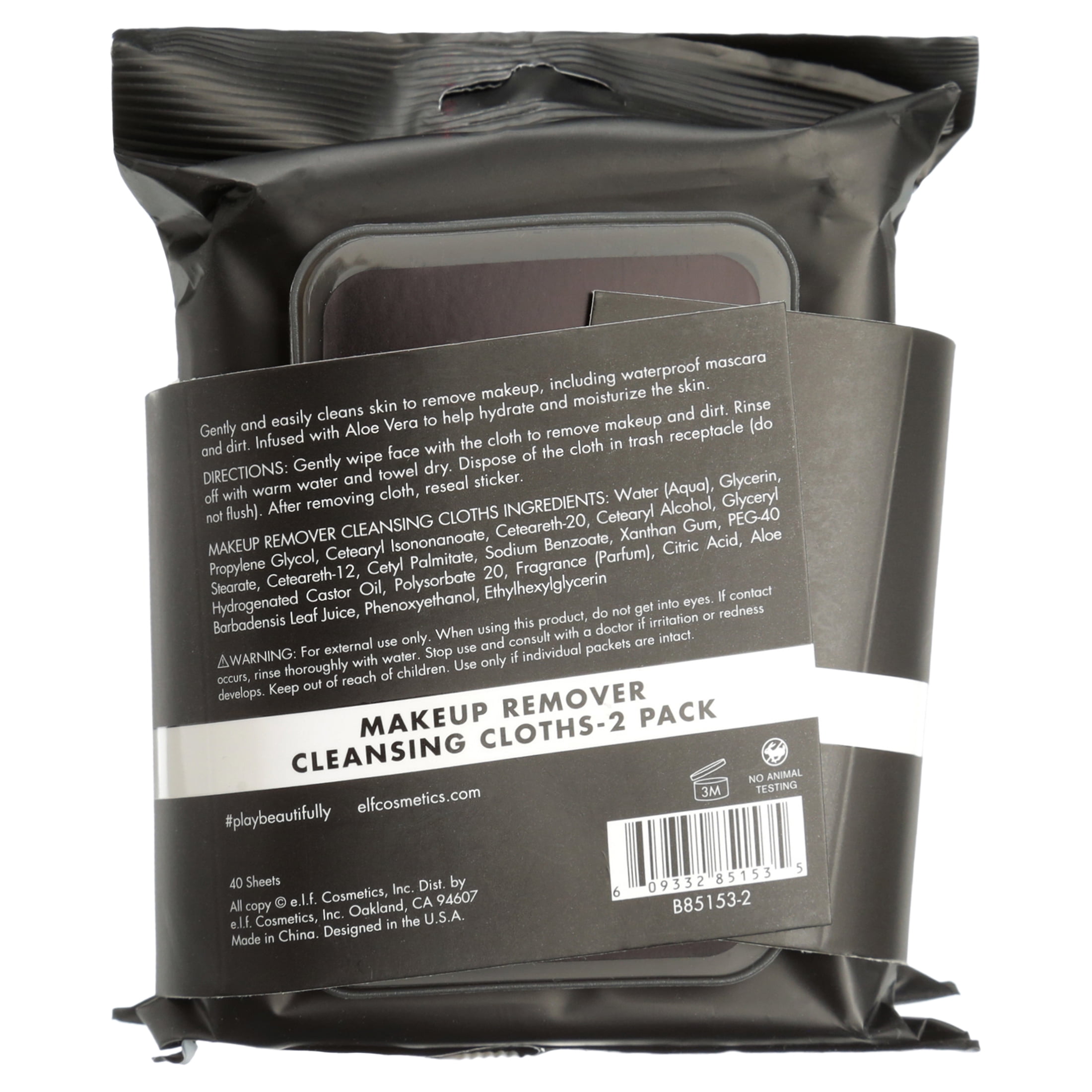 Gently and easily clean skin removing makeup and dirt with e.l.f. Makeup Remover Cleansing Cloths ? 2 Pack. Infused with Aloe and Vitamin E to nourish and hydrate, wipes leave skin refreshed and smooth.