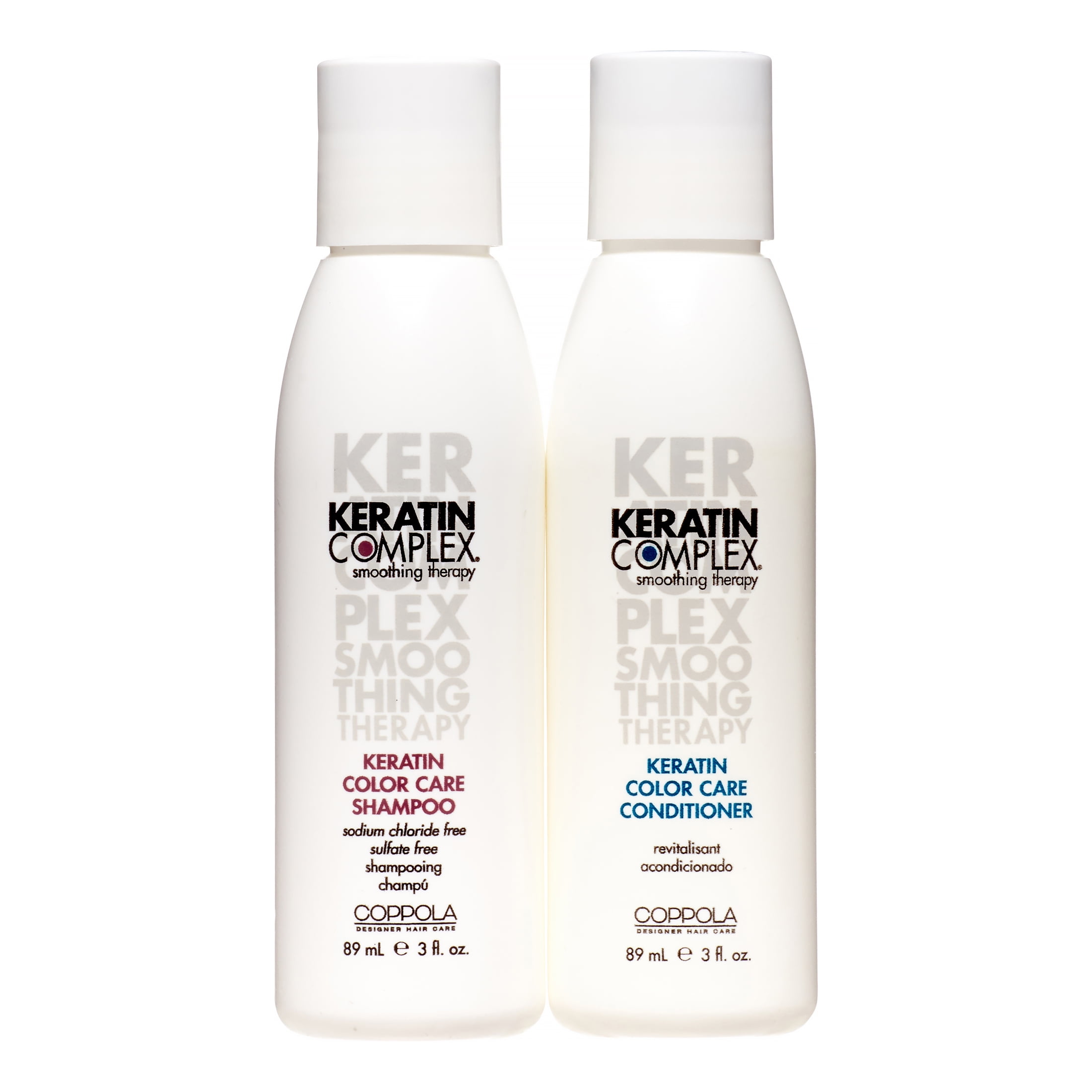 Keratin Complex Color Care Shampoo & Conditioner mildly cleanse hair and give lasting smoothness to keratin and color treated hair. It is free of sulfates and sodium chloride to protect color treated hair. A three-protein blend minimizes frizz and flyaway for shine and smoothness. Keratin Complex begins with the keratin protein that helps make hair manageable, smooth and youthful-looking. They have created a full, keratin enhanced at home product line that allows anyone to experience the benefits of keratin.Keratin Complex Color CareTravel Valet Shampoo & Conditioner 3 Oz each