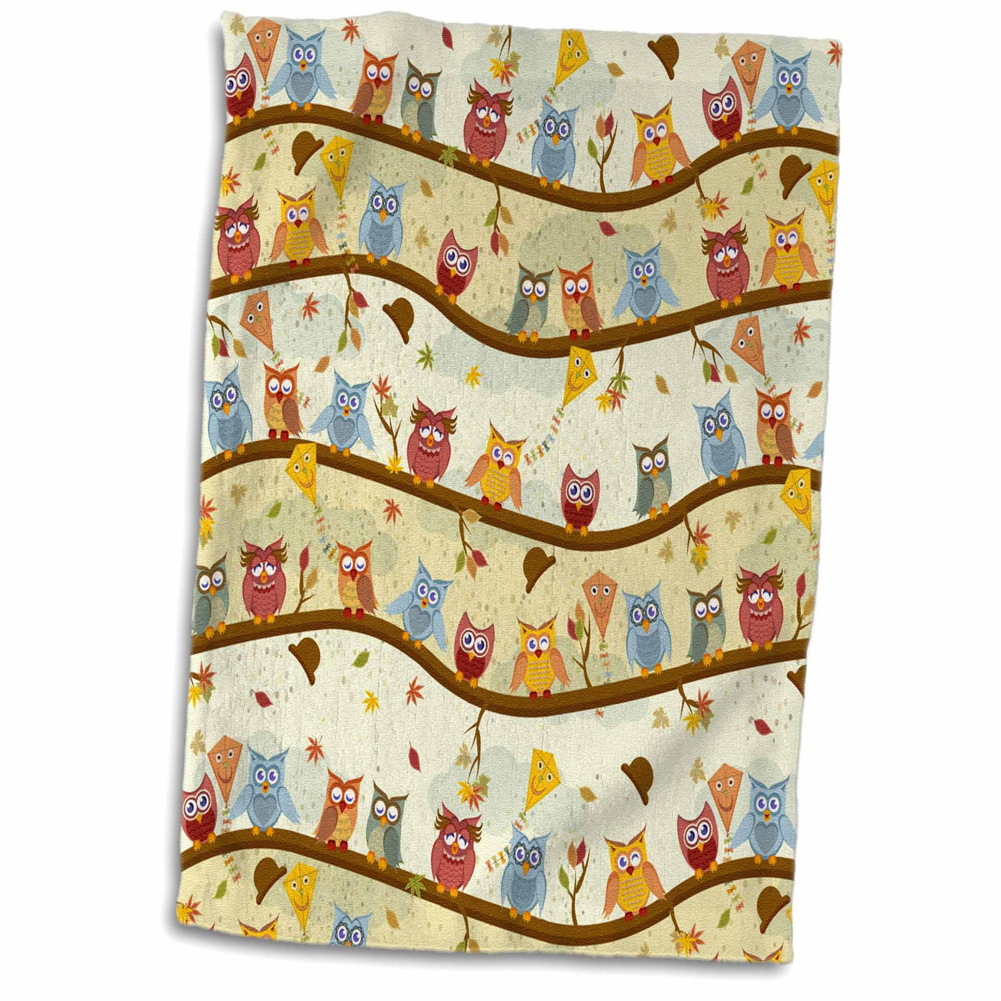 Autumn Owls Towel is great to use in the kitchen, bathroom or gym. This 15 by 22 inch, hand/sports towel allows you to customize your room with a special design or color. Great for drying dishes, hands and faces. Suitable to put in any sports bag. Image will not fade after washing. Machine wash, tumble dry low, do not bleach. Towel will regain its fullness after the first washing. Made of 63% polyester (microfiber) /37% cotton (velour terry cloth). Image printed on microfiber side/ terry cloth side blank.