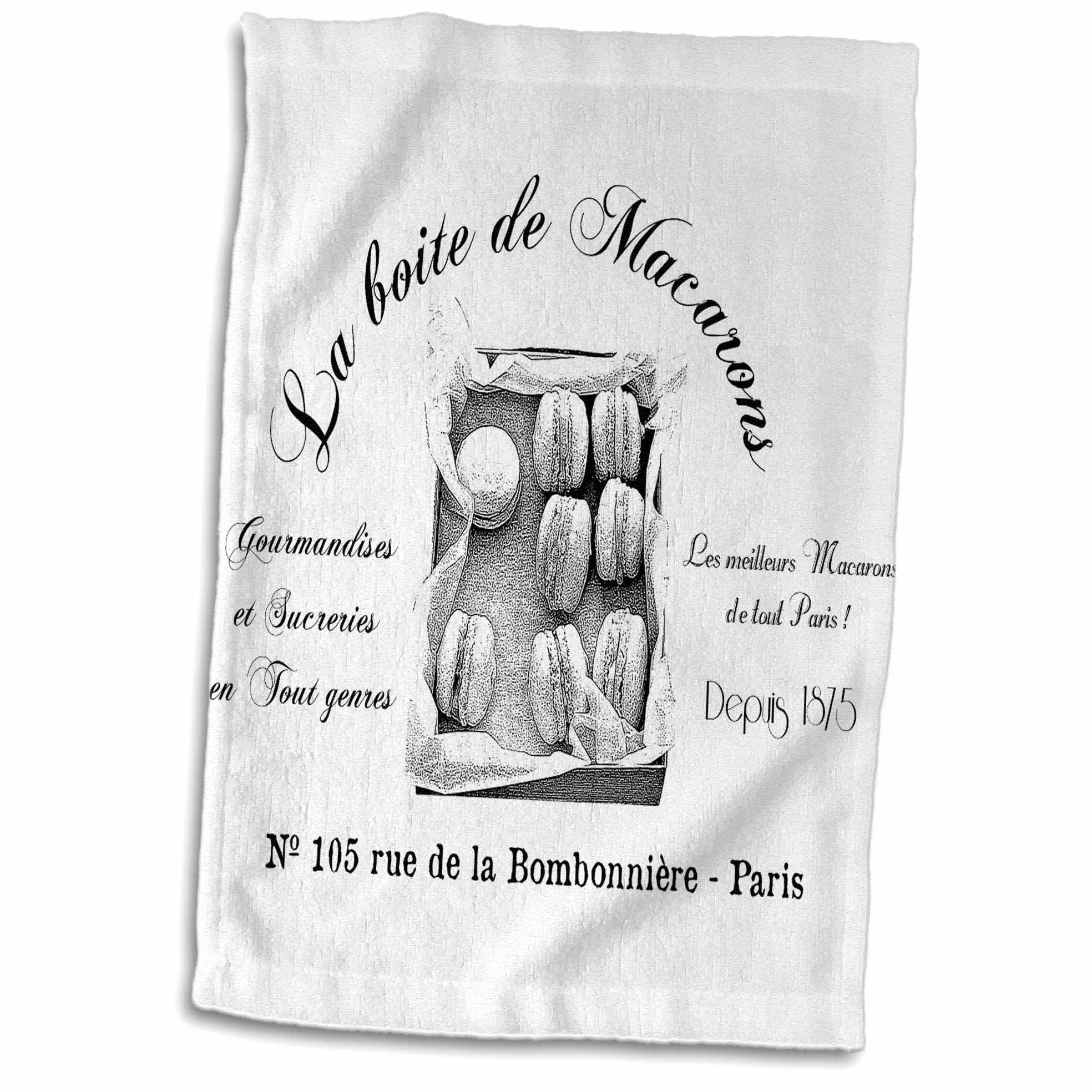 French Macarons Vintage Towel is great to use in the kitchen, bathroom or gym. This 15 by 22 inch, hand/sports towel allows you to customize your room with a special design or color. Great for drying dishes, hands and faces. Suitable to put in any sports bag. Image will not fade after washing. Machine wash, tumble dry low, do not bleach. Towel will regain its fullness after the first washing. Made of 63% polyester (microfiber) /37% cotton (velour terry cloth). Image printed on microfiber side/ terry cloth side blank.