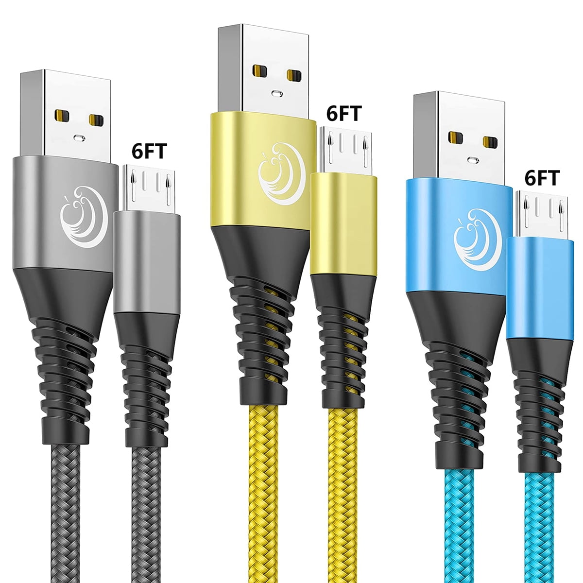 3Pack 6FT Micro USB Cable, Aioneus Android Charging Cord Fast Charger Cable Braided USB Charger Cord for Samsung Galaxy S7 Edge S6 S5 S2 J7, Tablet, LG, Moto E4 E5 E6, PS4-Micro Phone,Android Phones