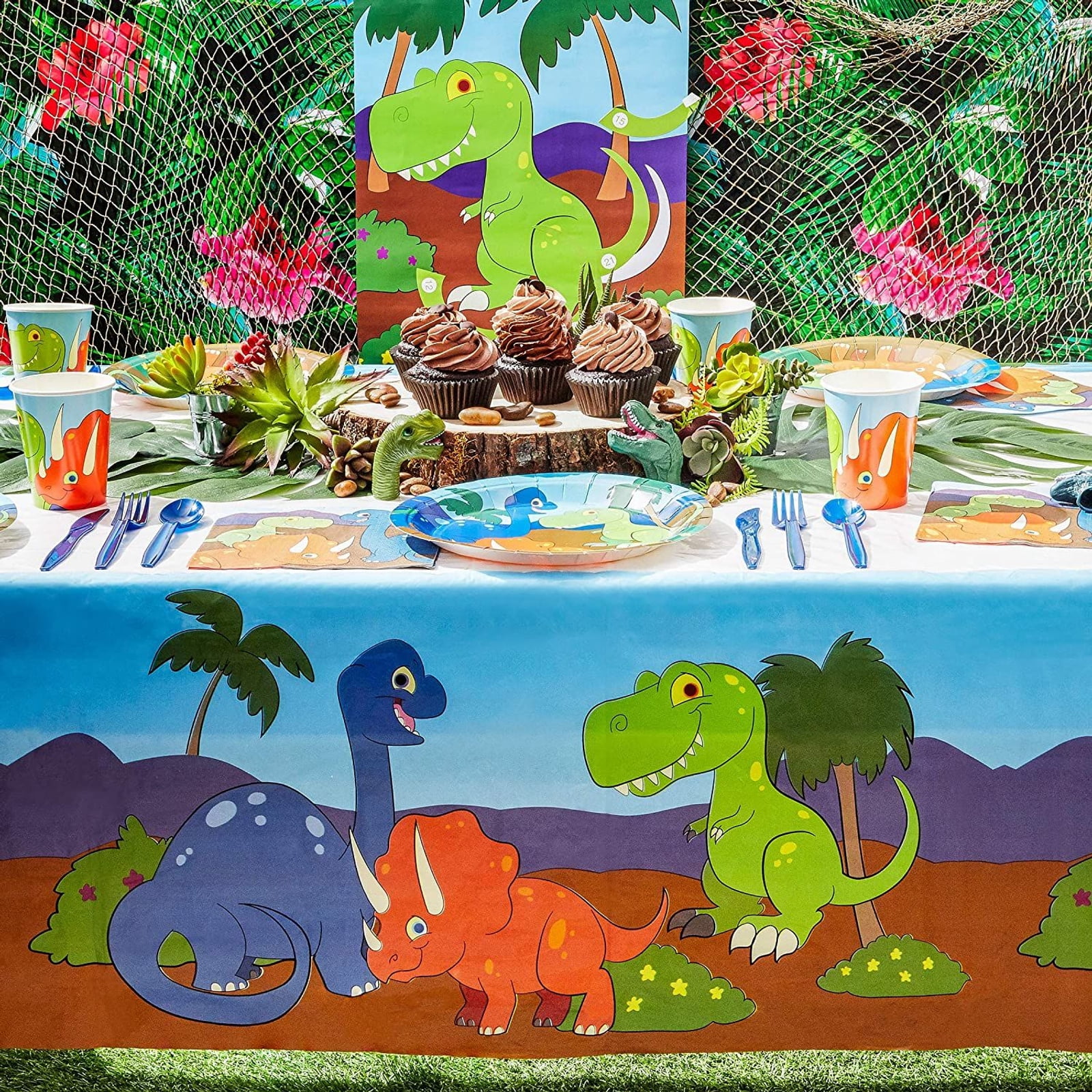 6 Pack Dinosaur Plastic Tablecloth for Kids Birthday Party Decorations, Dino Rectangular Table Cover, 54 x 108 in