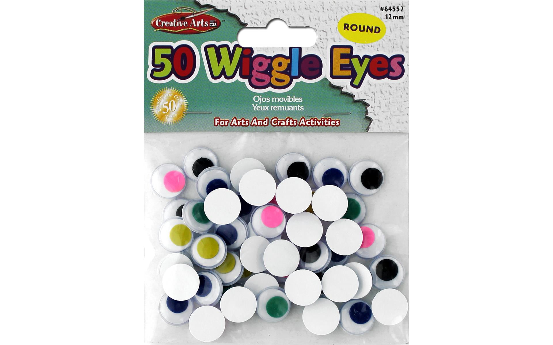 Creative Arts Wiggle Eyes Round 12mm Multi 50pc- Wiggle eyes in assorted colors Flat back for gluing Great for all craft projects White eye with movable iris colors include black pink yellow green blue64552 CREATIVE ARTS WIGGLE EYES RND 12MM 50PC MULTI