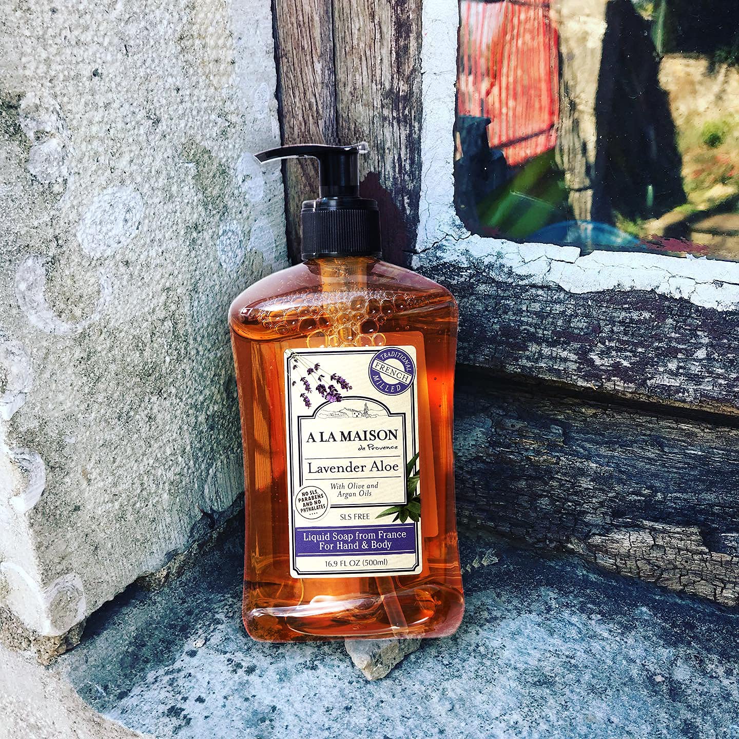 Discover the long-lasting, soothing sc ent of a la Maison de Provence lavender aloe liq uid so ap. The calm ing smell of lavender will help you stay relaxed while the aloe enriches the softness of your skin. Our liq uid so ap from France is usable on the hands and body. Includes one 16.9 fl. Oz. Container of a la Maison de Provence lavender aloe liq uid so ap. Our traditional recipe dates back to 1828 in France when Marseille so ap masters developed the famous french milled process. Slow cooking and purifying process which transforms vegetable o ils into glyc erin-rich, smooth, lathering so aps; softer to the skin than other liq uid so aps. We hold ourselves and our products to a high standard by remaining completely cruelty-free and using recyclable materials. While we have expanded beyond so ap, we hold true to the traditional process of making all our products honest, natural, and simple. Get something that smells as delightful as you are, with a la Maison