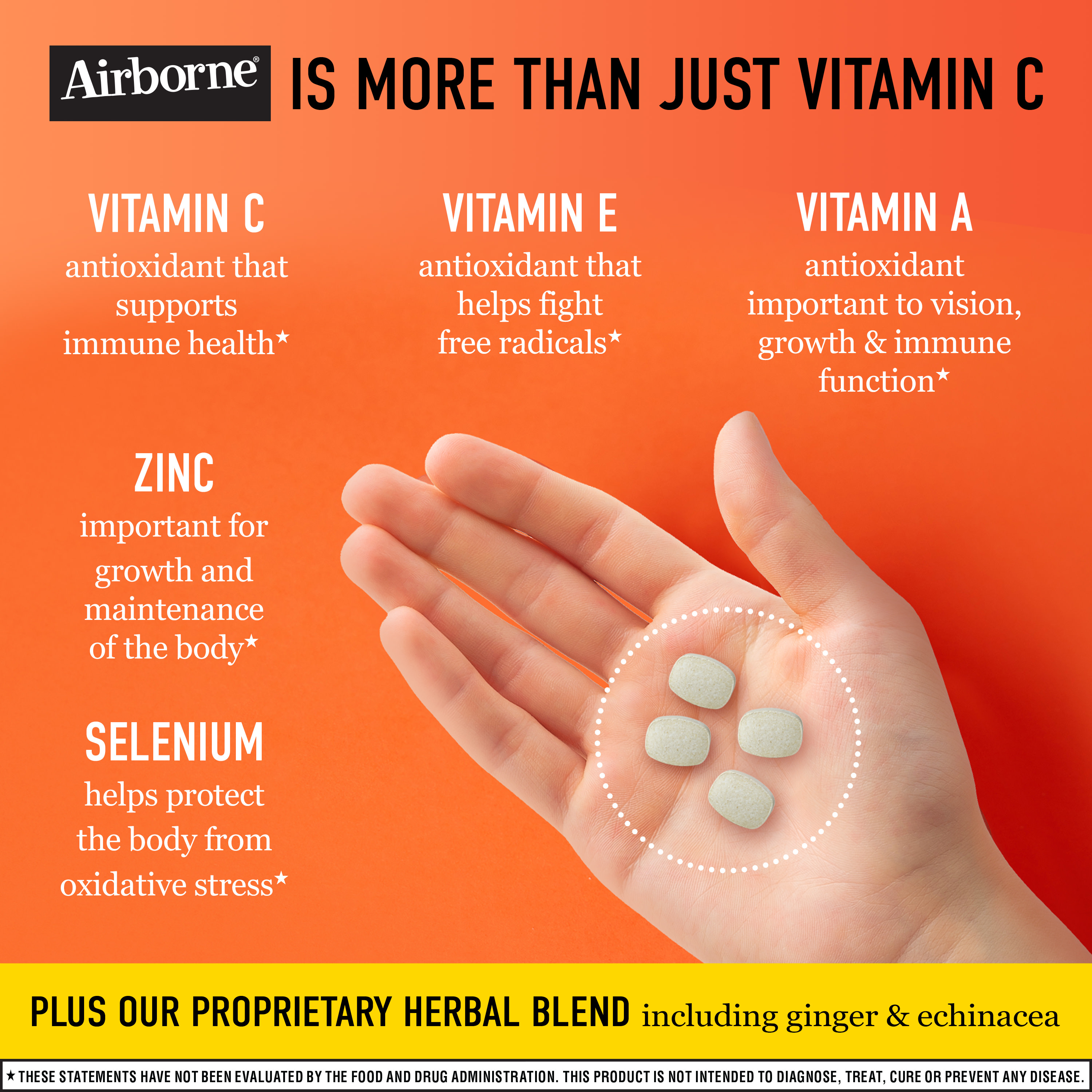- VITAMIN C 1000mg: Airborne Vitamin C chewable Zinc tablets are packed with 1000mg Vitamin C per serving, which helps support your immune system.*