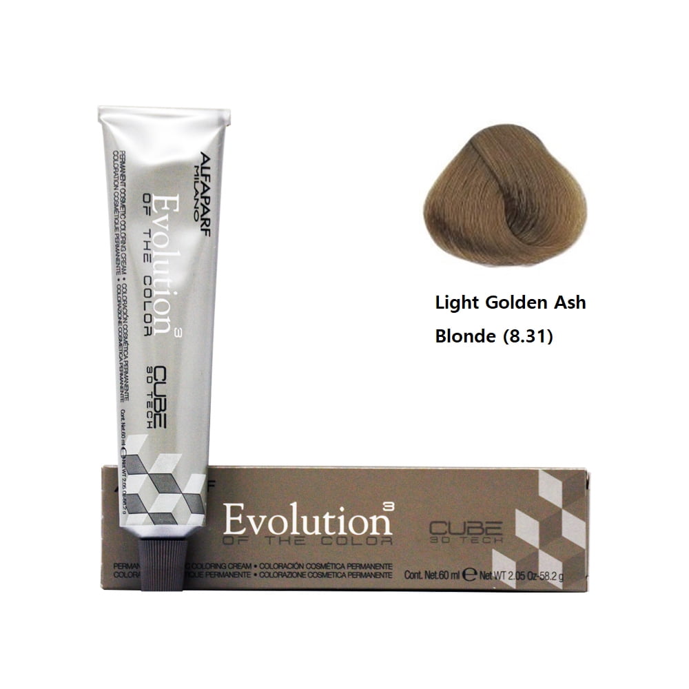 Evolution of the Color permanent hair coloring cream is formulated with unique micro-pigments and an exclusive botanically derived essential oil cream baseAlfaparf color- Light Golden Ash Blonde (8.31)