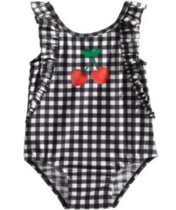First Impressions Baby Girls Gingham-Print Cherries Swimsuit, 12 M/Black Check