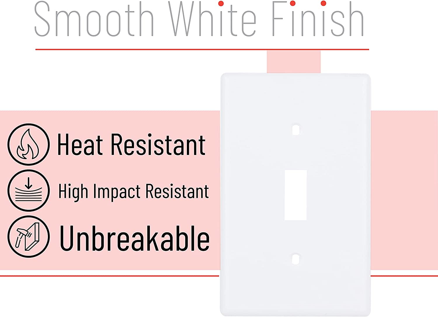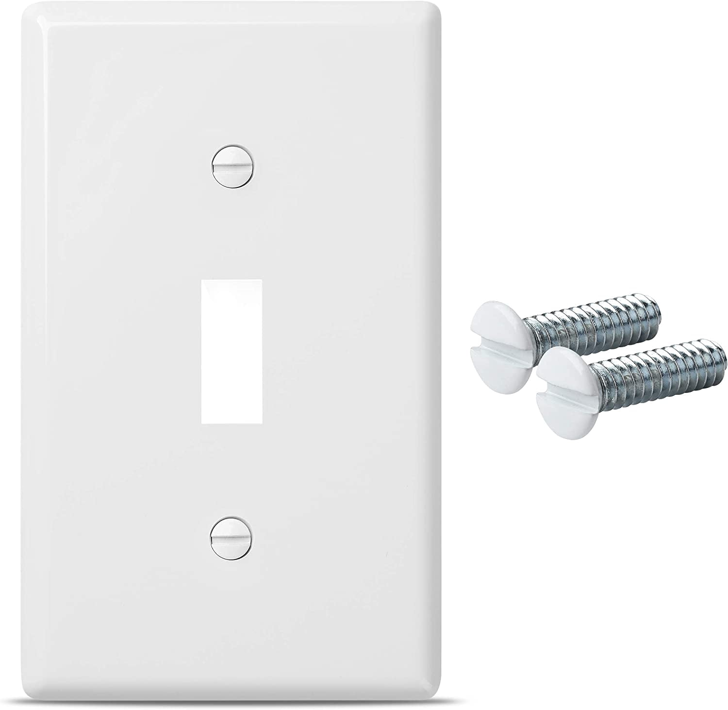 Package Includes: 10 White Light Switch Wall Plates, With Matching Screws LIFE-TIME Warranty: Premium Quality, Shatter-Proof, Heat And Fade Resistant 1 Gang Wall Plates Fits Any Standard Wall Plate Of The Same Configuration: 4.5 x 2.76 x 0.24 Inches Includes Painted Screws To Match The Wall Plates Perfect for DIY Projects, Or Repairs To Upgrade Home, Or Office