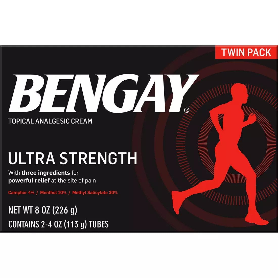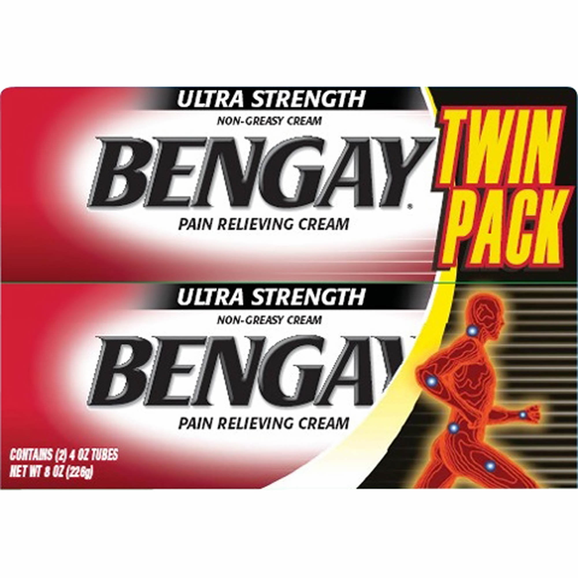 Bengay Ultra Strength Pain-Relieving Cream 4 oz. 2 Pk. For extra-strong relief from aches and pains, use Ultra Strength Bengay Cream. Infused with three pain-relieving ingredients, more than any other Bengay product, this cream provides relief from minor arthritis, backache, muscle, and joint pain. Massage onto skin for deep, penetrating pain relief. From the number-one pharmacist-recommended brand, this non-greasy cream is the strongest Bengay Product ever, and it comes in two 4-oz. tubes for convenient application. Bengay Cream for pain, Bengay Cream green ,Bengay Cream ultra strength, Bengay Cream extra strength