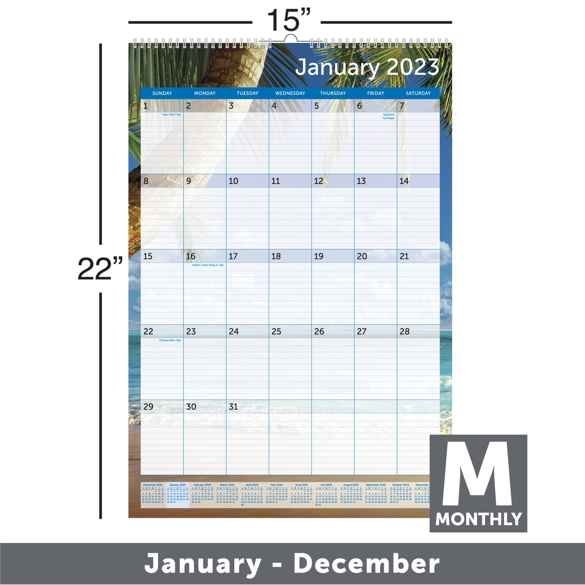 - Specifications – 16-months (two-page layout September–December 2022, and January–December 2023); 14" x 12" (closed); 14" x 24" (opened); 28 pages