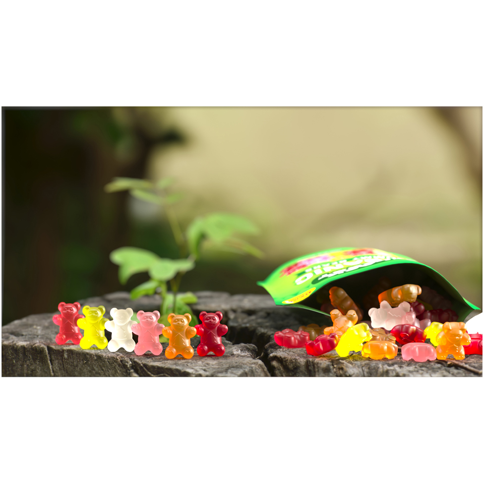 - These tasty gummy bears come in apple, cherry, pineapple, lemon and orange flavors