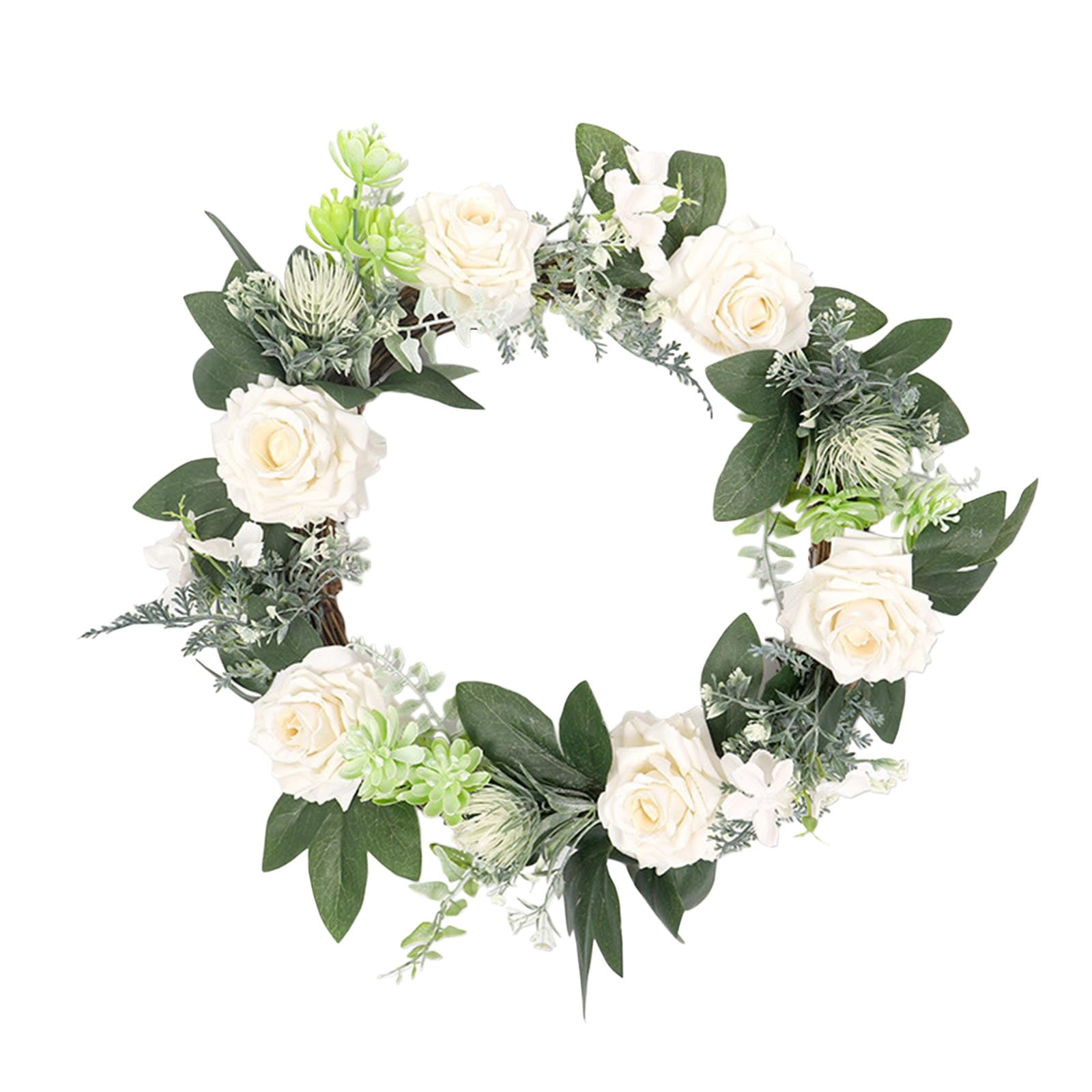 Bulepople Spring Leaf Wreath Plastic Artificial Plant Home Decoration Wreath Front Door