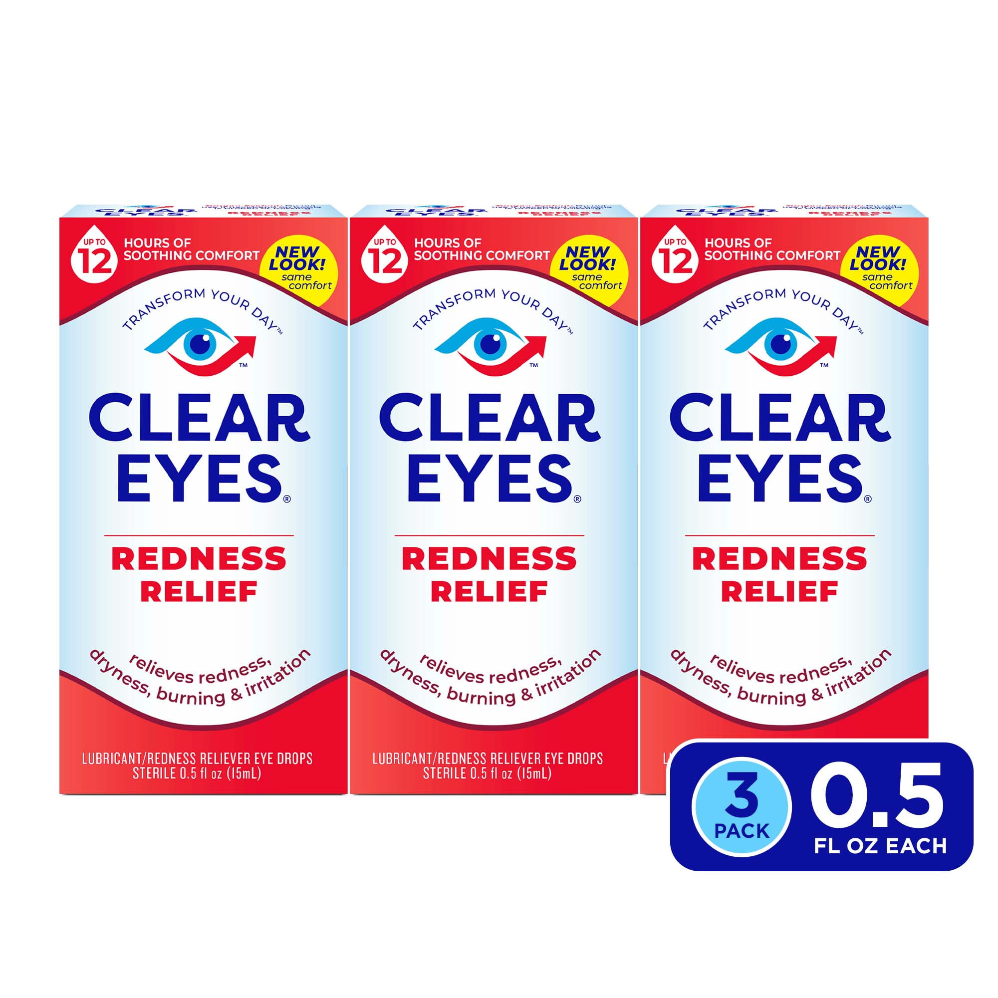 Clear Eyes Redness Eye Relief Lubricant Eye Drops, 0.5 fl oz, Pack of 3
