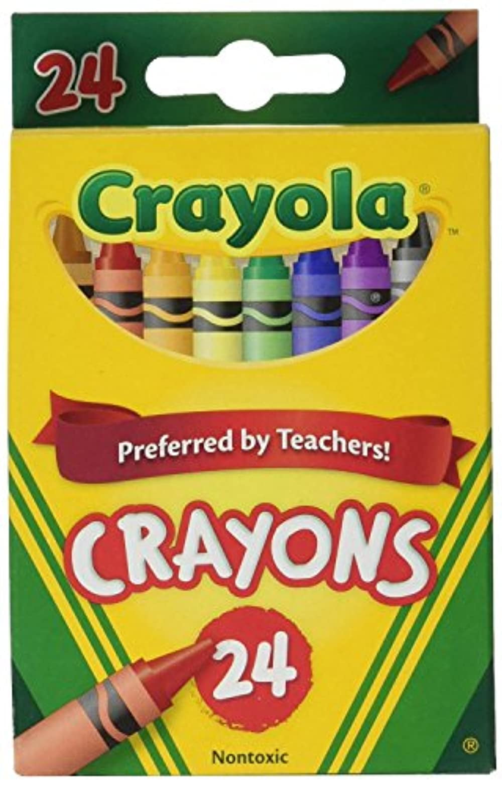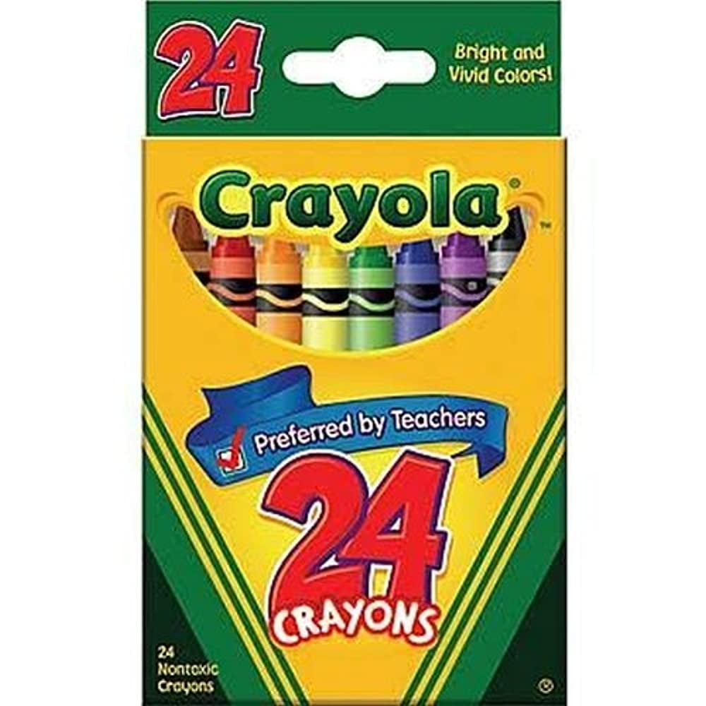 Crayola Crayons, 24 count (52-3024) Case of 12 packsKids will love to use these crayons at home or at school. They come in a convenient portable box that is small enough to fit in a book bag, and large enough to hold 24 different colors. In addition to classic Crayola colors, this box contains fun shades such as carnation pink, dandelion, indigo, and scarlet, allowing kids to mix and match for colorful drawings and bold signs.
