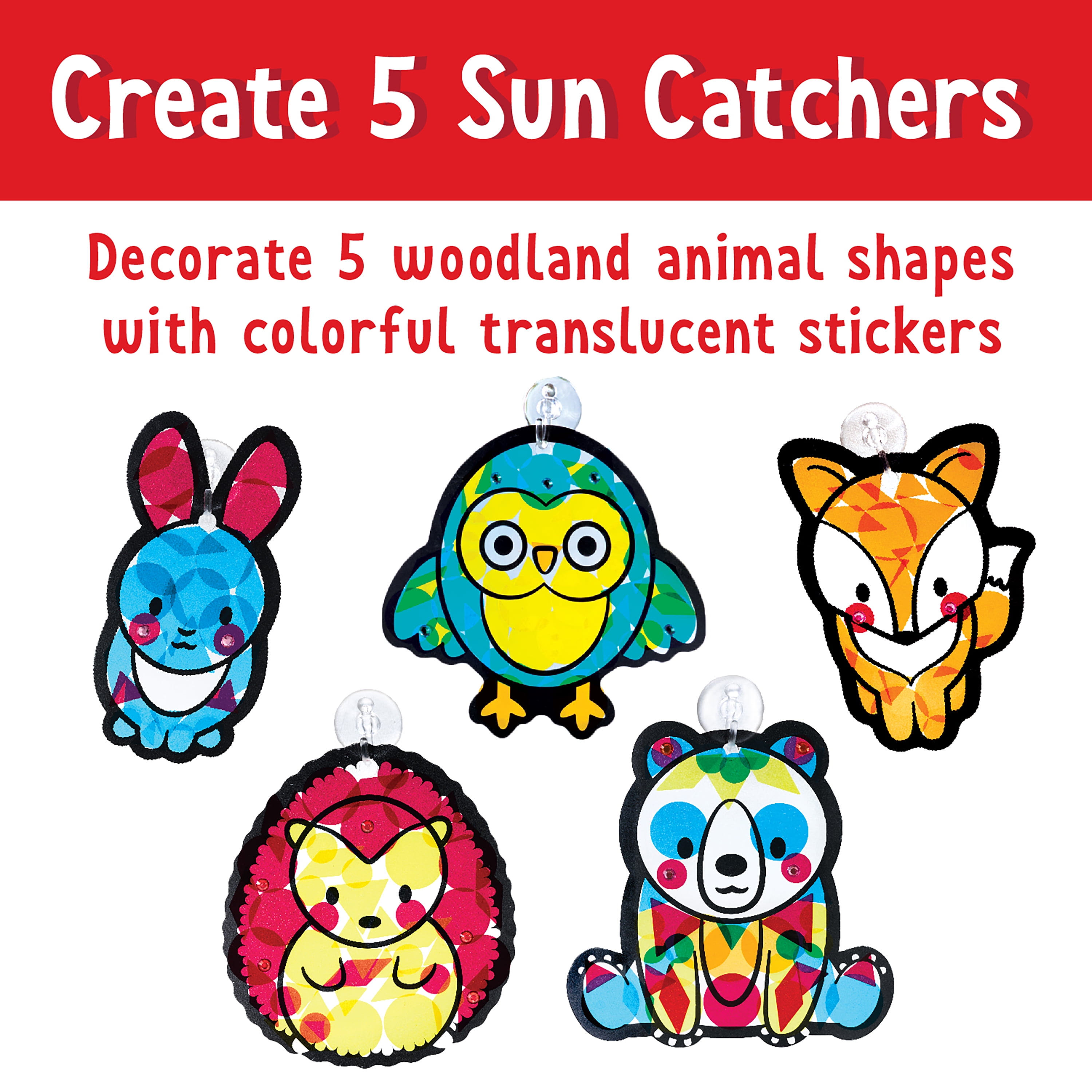 - MAKE YOUR OWN SUN CATCHERS – Create 5 sun catchers with this easy crafting technique! Use colorful, translucent stickers to decorate woodland animal templates!