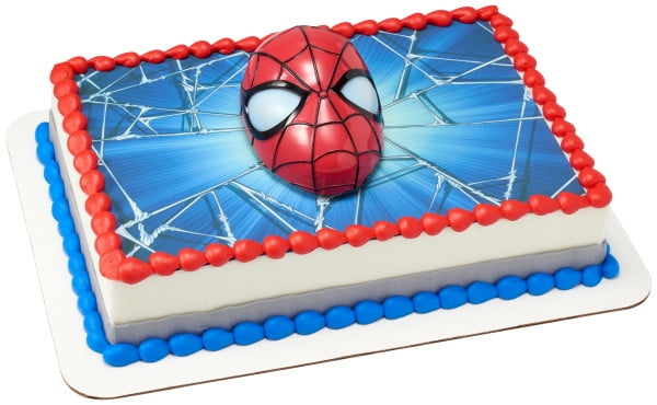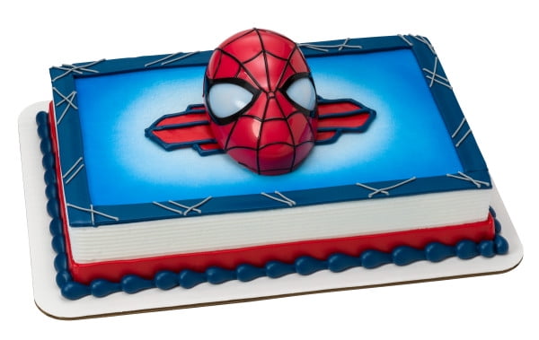 This dynamic cake features a large Spider-Man molded plastic head with light-up eyes to reveal a spider silhouette.