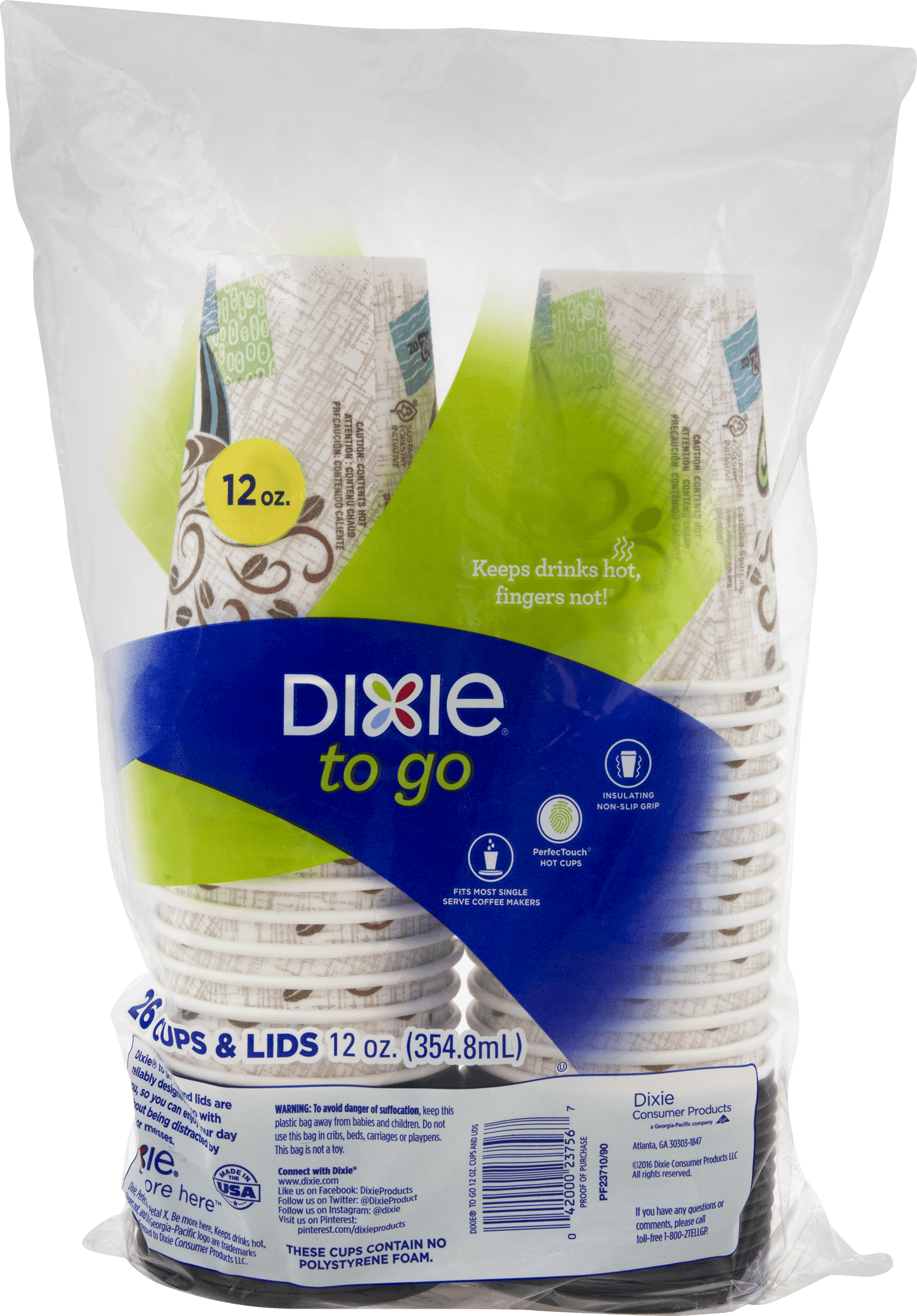 Dixie To-Go Hot w/lids Cups 12 oz 26ct