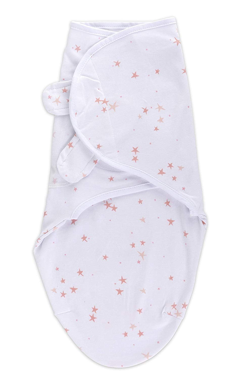 Ely’s & Co. Size 0-3M 2-Pack Stars Adjustable Swaddle Blankets in White/Pink