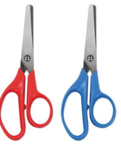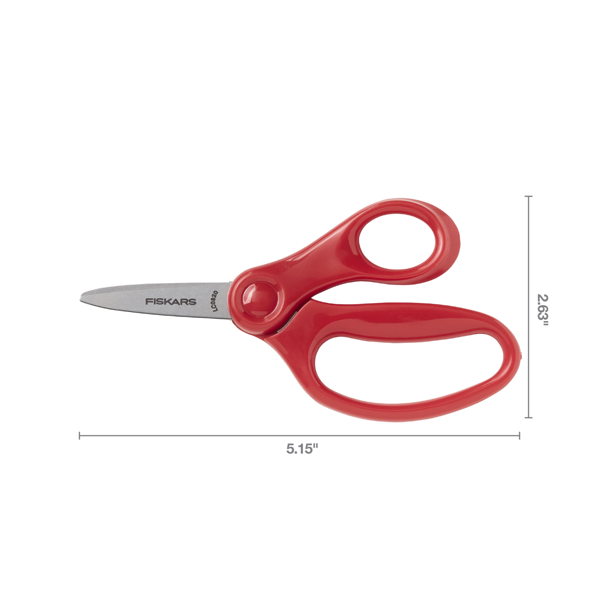 Fiskars Pointed-tip Kids Scissors (5 in.) gives your child the shiny, bright and smooth handle they love, plus a pointed-tip design for improved cutting control. Teachers and parents love the high-quality cuts through all classroom materials, as well as the innovative, safety-edge blades with a safer blade angle. A larger finger loop and an ergonomic thumb loop also provide a natural, more comfortable fit for kids’ fingers.