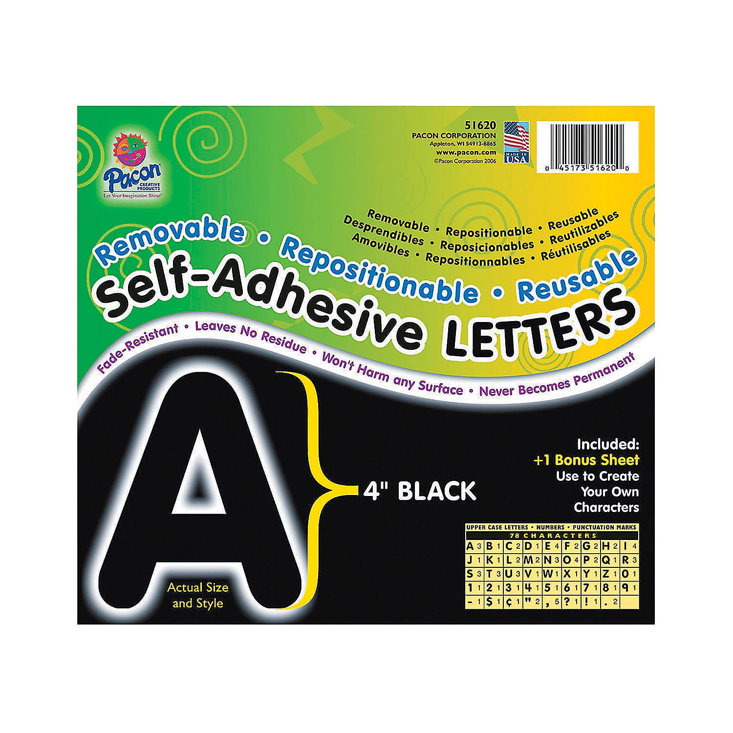 Fun Express 4′ Removable Adhesive Letters – Black – Educational – 78 Pieces