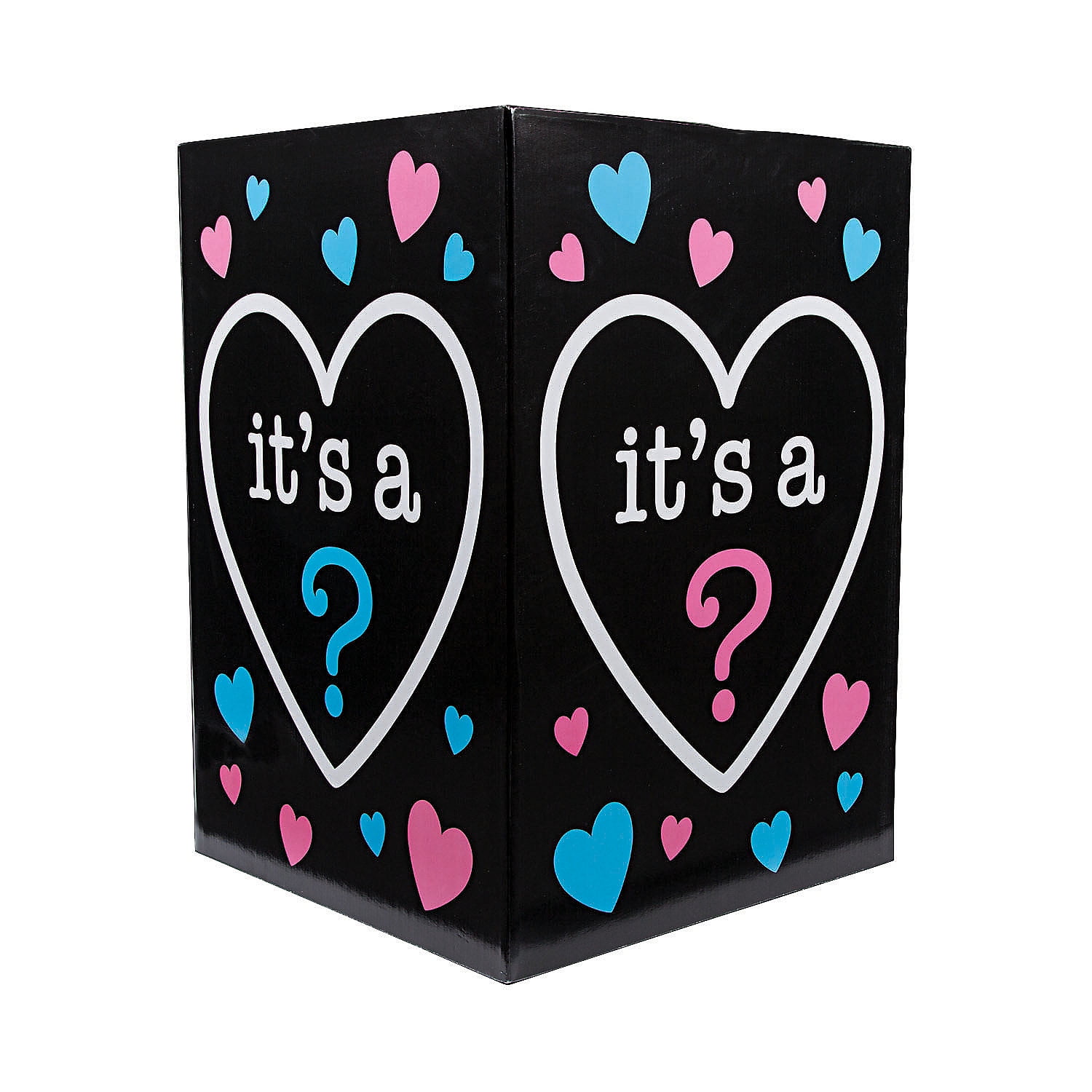 It’s a… Gender Reveal Balloon Box! Find out if your baby is a girl or boy in a fun and exciting way! Before your gender reveal party, have a friend (who’s in on the secret) fill the box with either pink or blue balloons. The day of the party, watch the balloons fly. You’re in for a perfect photo op, not to mention a major surprise! The box holds eight 11” standard balloons. Cardboard. 17" x 17" x 24" Simple assembly required.