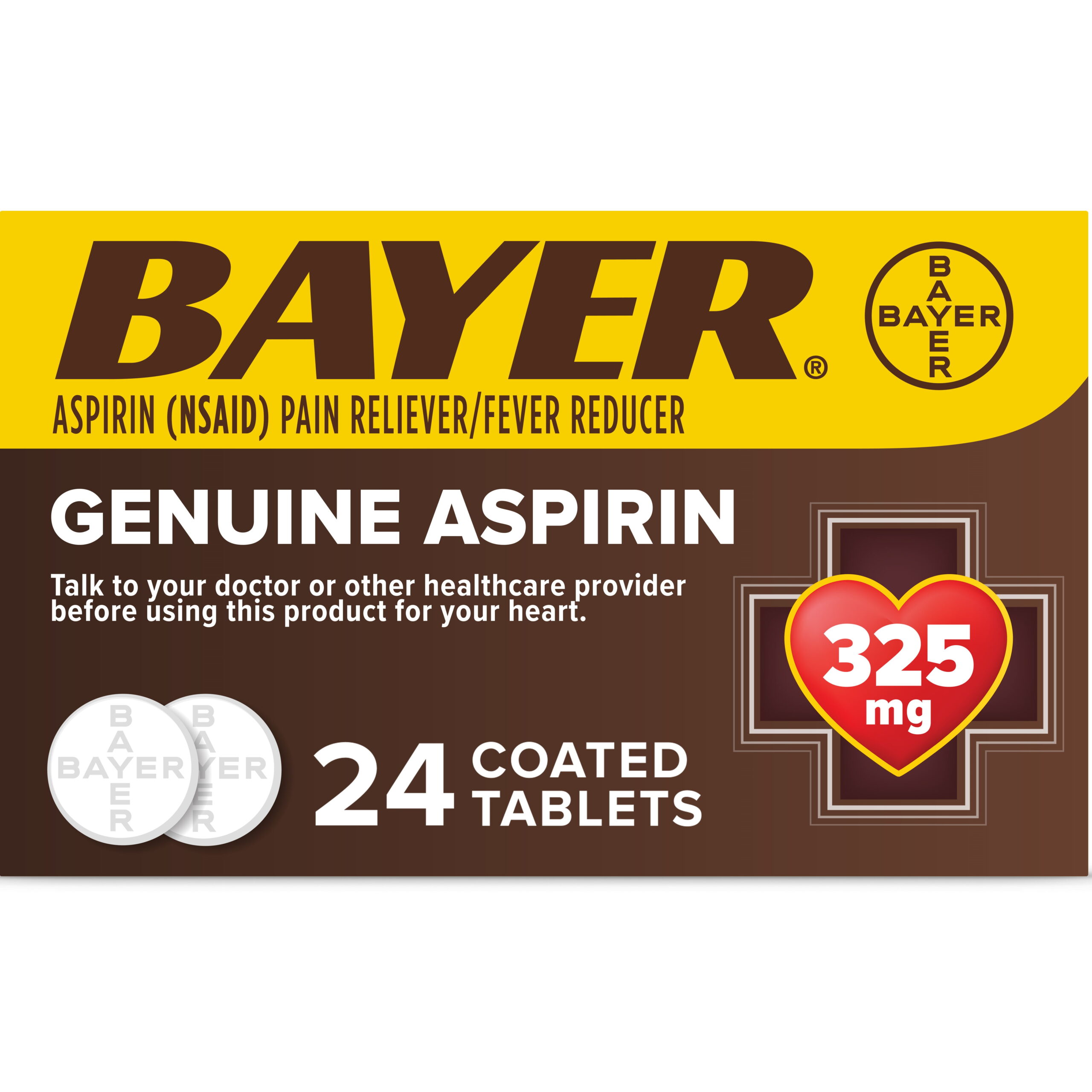 Genuine Bayer Aspirin Pain Reliever / Fever Reducer 325mg Coated Tablets, 24 Ct