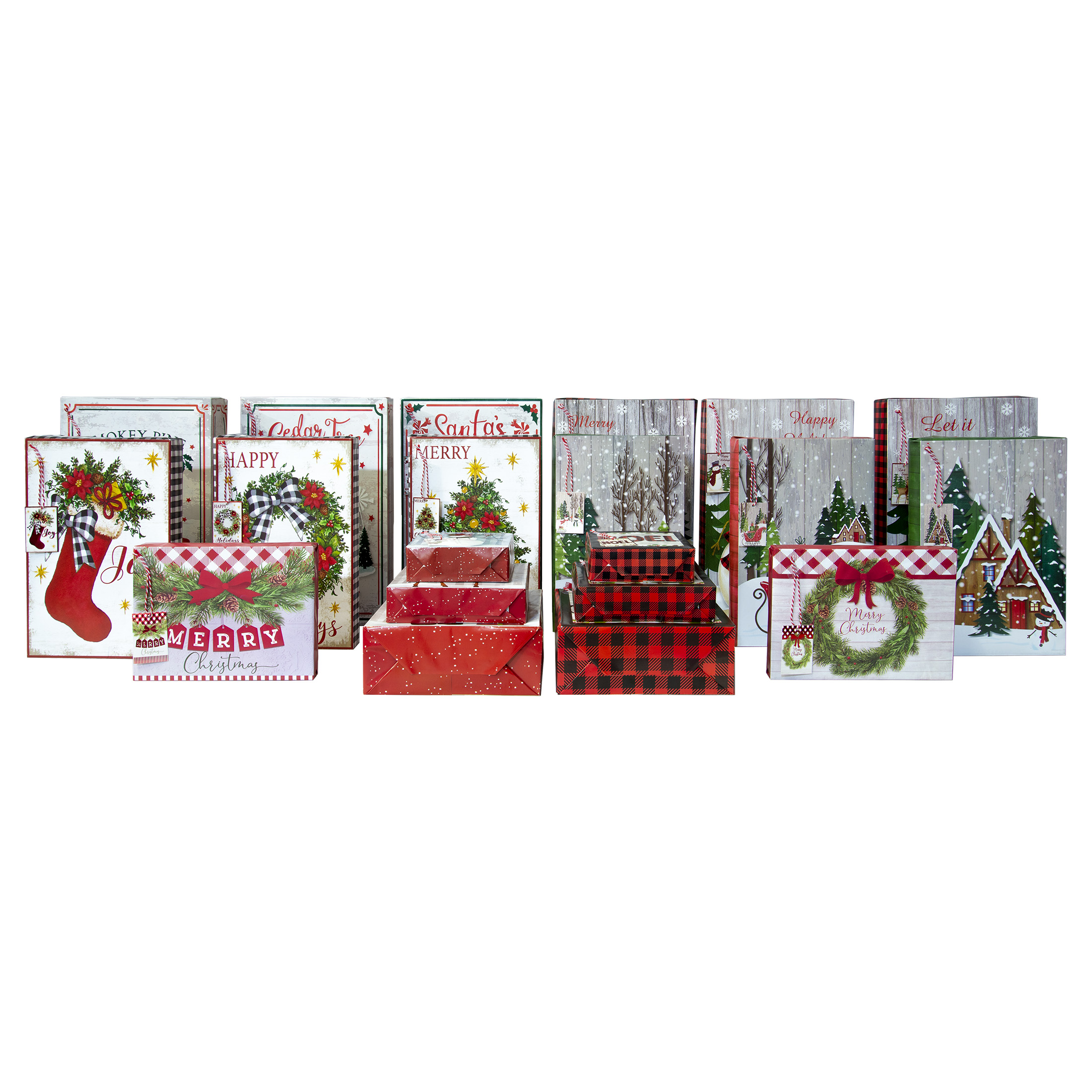 - Assortment of gift box sizes to accommodate gifts of all types, shapes, and sizes; boxes include: