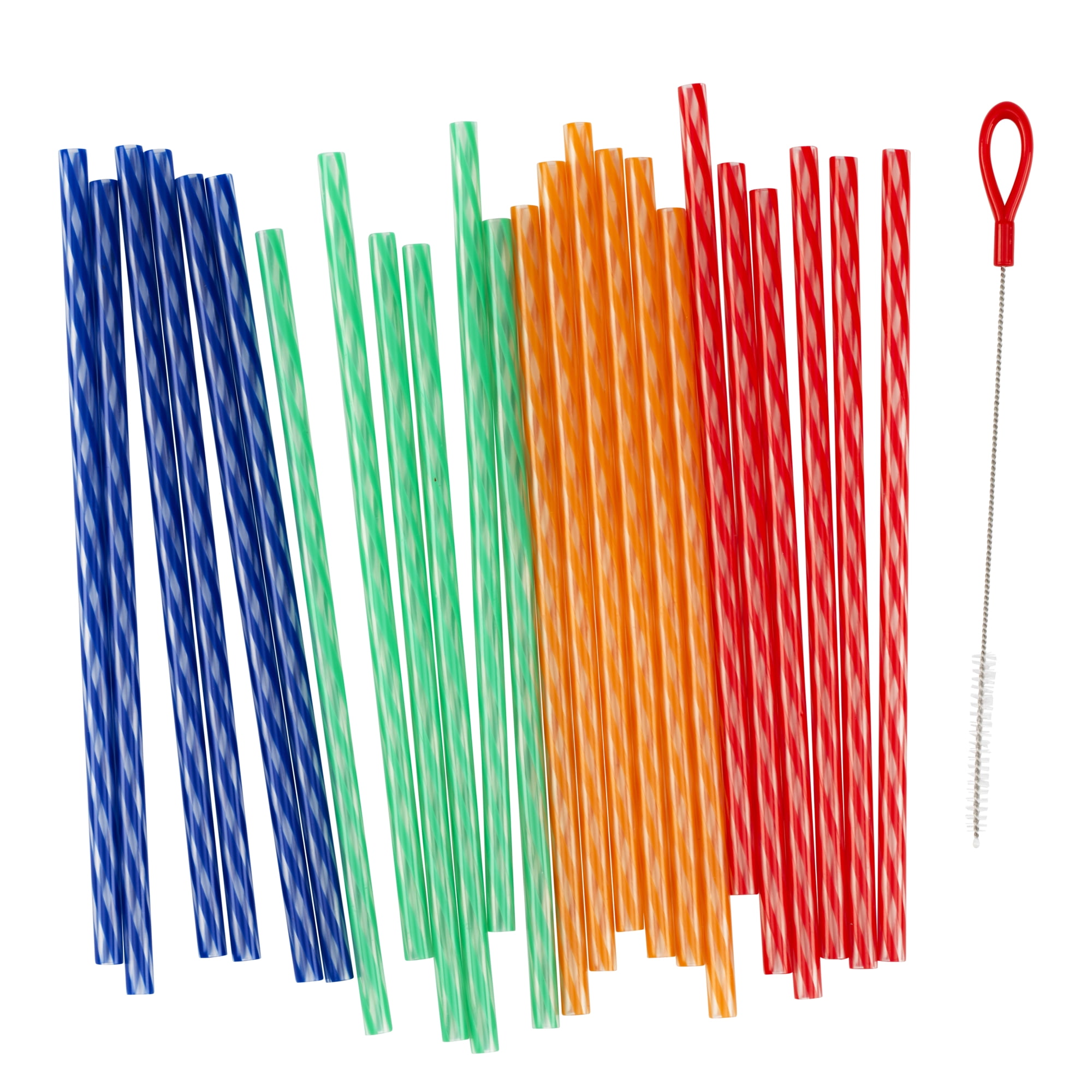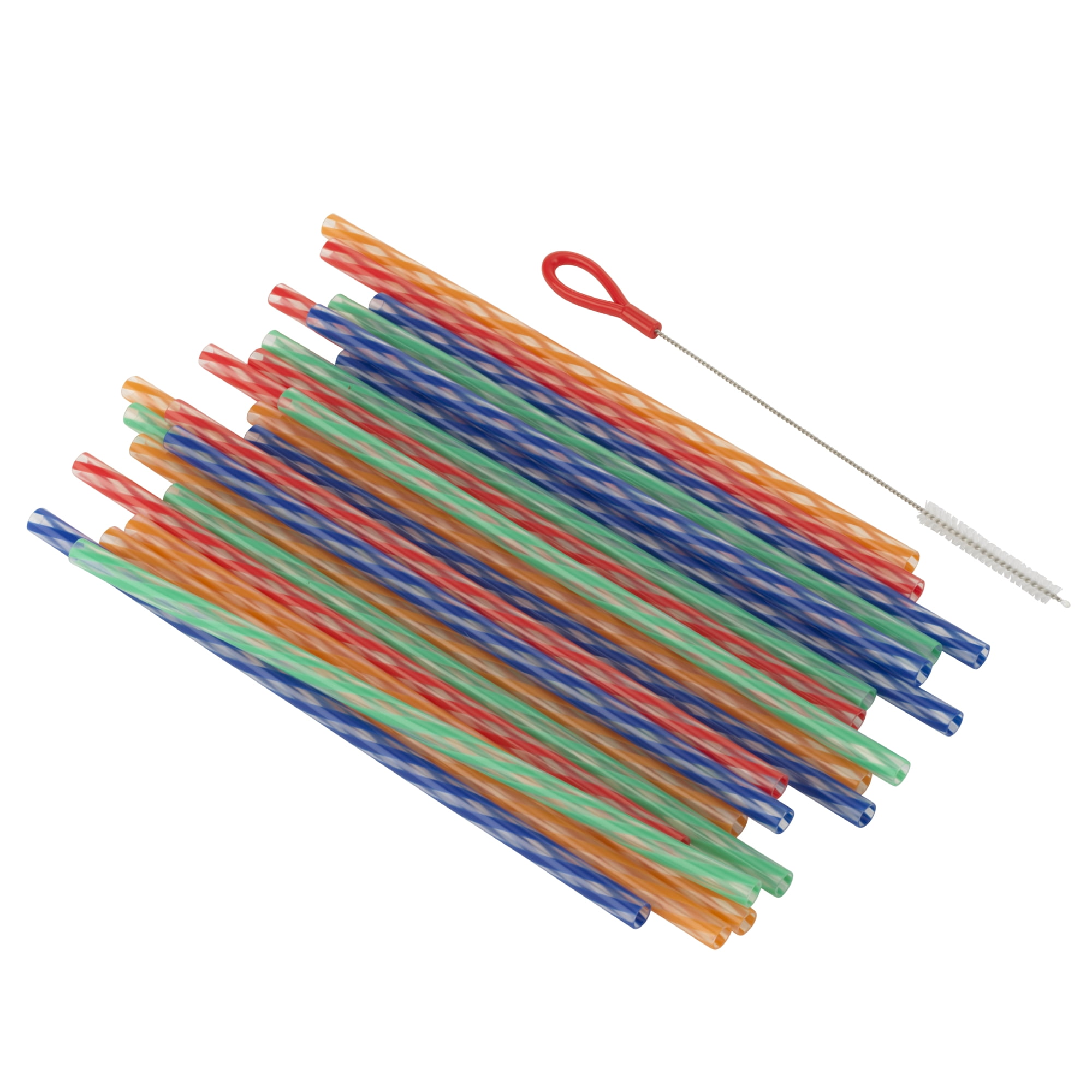 - Set of 24 reusable BPA-free plastic straws with a coordinating cleaning brush